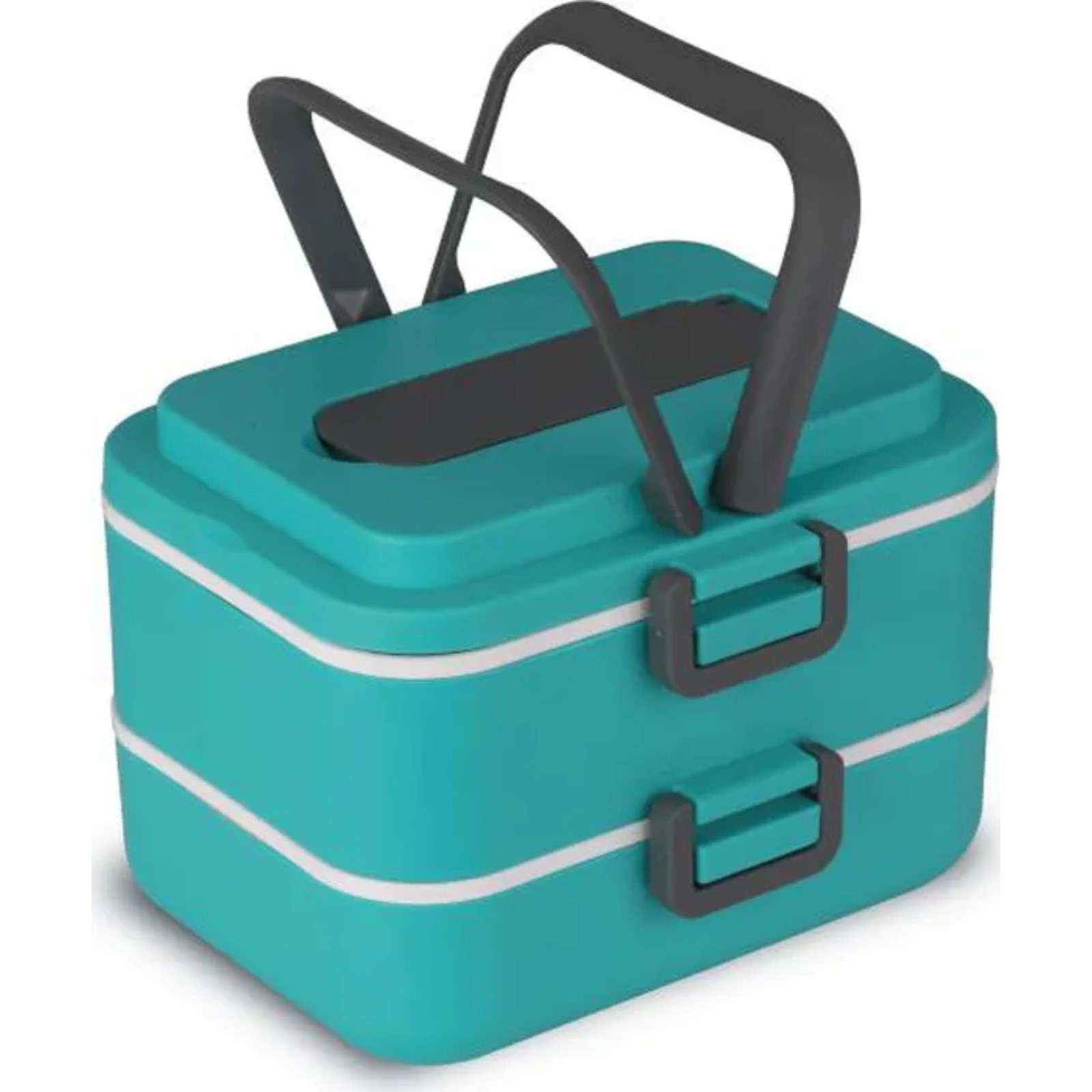 Пластиковый корпус и ручкиКрышка с силиконовым уплотнителем и вакуумным клапаномВнутри пластиковый контейнер для микроволновой печиВодонепроницаемый боковые фиксаторыСохраняет тепло +40 в течение 4 часов Рекомендована ручная чистка Состав: пластикЦвет бирюзовый2 контейнера по 750 мл