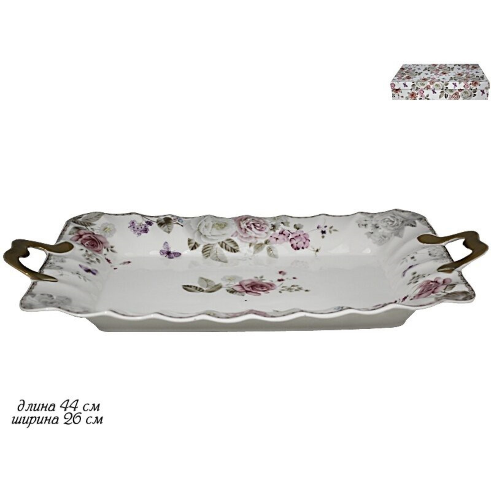 Блюдо Lenardi «пионы», с ручками, длина 44 см