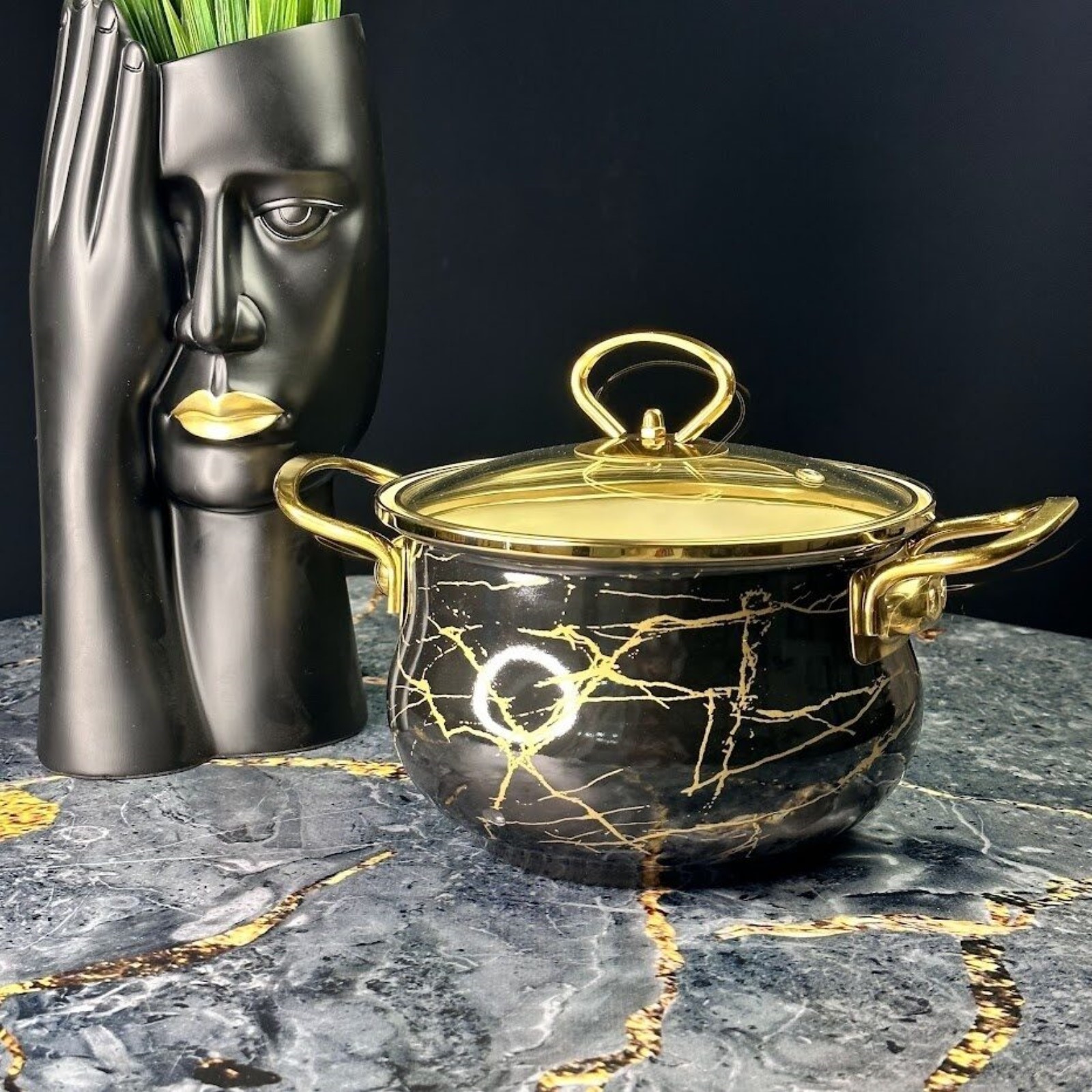 Кастрюля Lenardi «чёрный мрамор», с крышкой, 2.2 л
