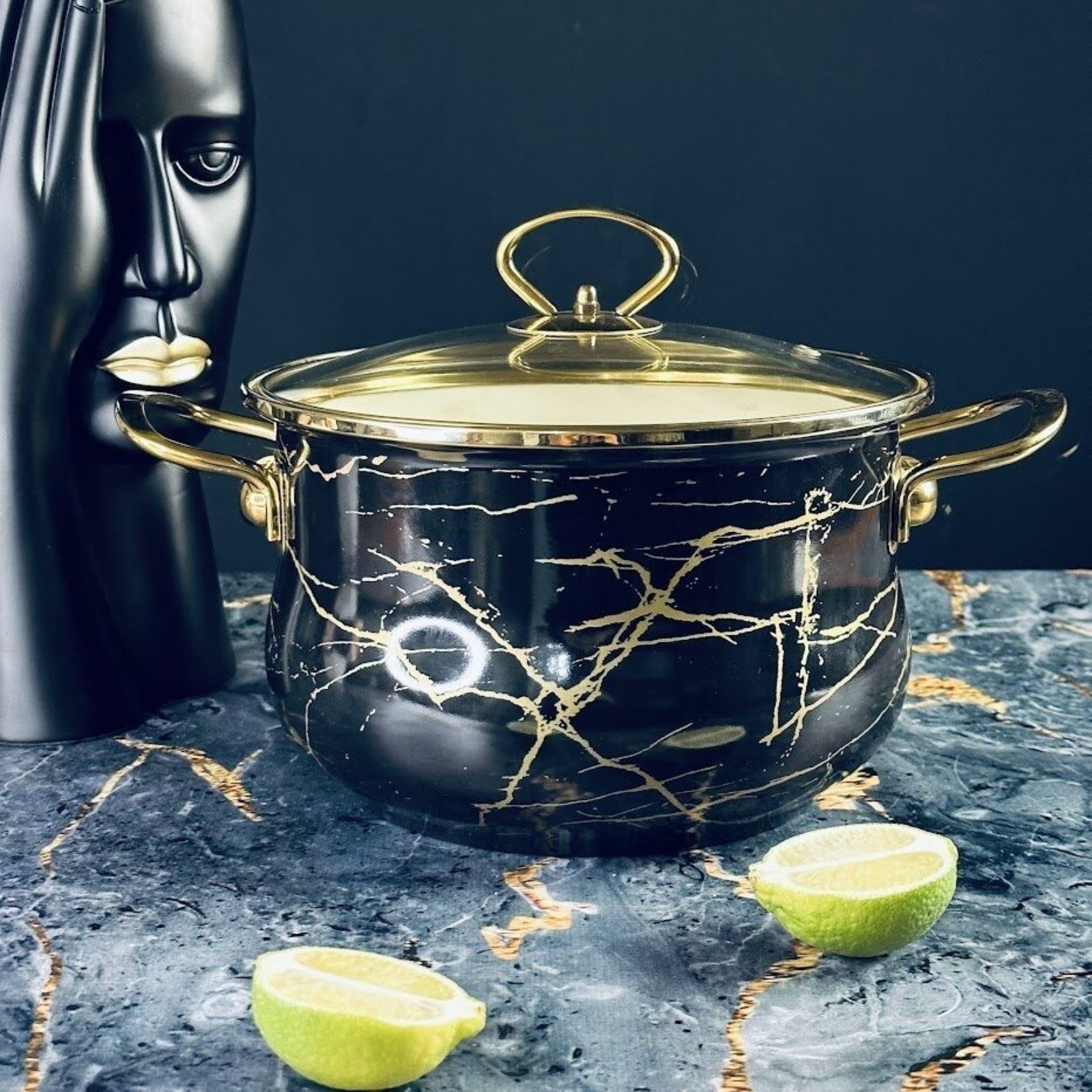 Кастрюля Lenardi «чёрный мрамор», с крышкой, 4 л
