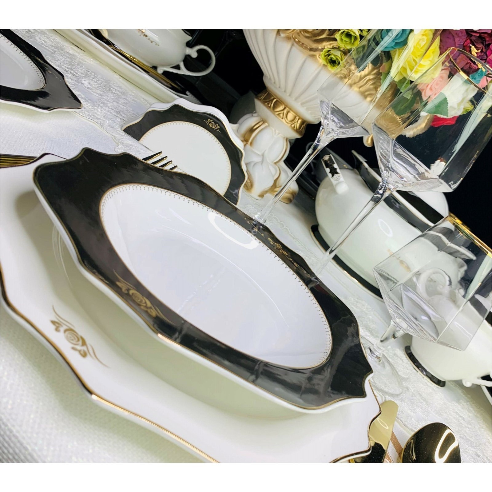 Набор глубоких тарелок lenardi rich, d=22 см, 6 шт. Изделие может иметь следующие несущественные дефекты: незначительный скол краски;прерывание и наплыв рисунка;наличие полосы на рисунке;потёртости и наплыв золотой краски на внутренней стороне;небольшие потёртости и царапины на глазури;засорения под глазурью;плотные вздутия глазури на внутренней поверхности;натёк глазури;наличие мушек (чёрных точек);неровность внутреннего отверстия;отклеивание страз;потёртость упаковки в уголках. Данные недостатки не влияют на свойства изделия при использовании. Цвет: Белый Цвет: Чёрный Форма: Круглая Диаметр, см: 22 В наборе, шт.: 6 Тематика: Узоры Крышка: Нет Материал: Фарфор Вид тарелки: Глубокая Можно мыть в посудомоечной машине: Нет Можно использовать в СВЧ-печи: Нет Текстура: Гладкая Особенности: С золотой отводкой Матовая поверхность: Нет Для горячего: Да Серия: Rich Серия: Lenardi Rich Форма: Круг, шар, цилиндр  развернуть описание ▼