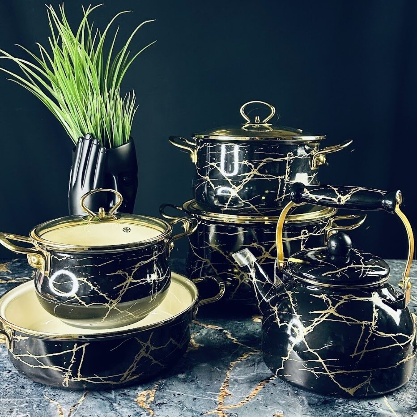 Набор посуды Lenardi «чёрный мрамор», 9 предметов