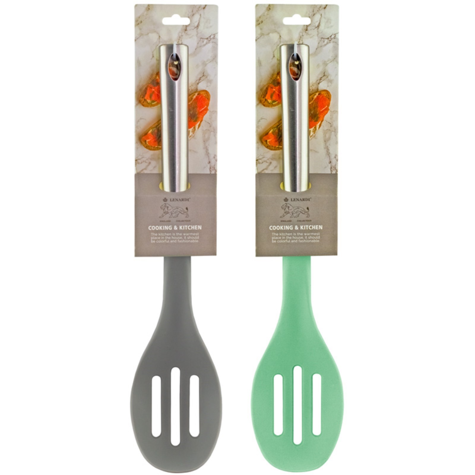 Ложка силиконовая Lenardi, с прорезями, 33 см, цвет микс