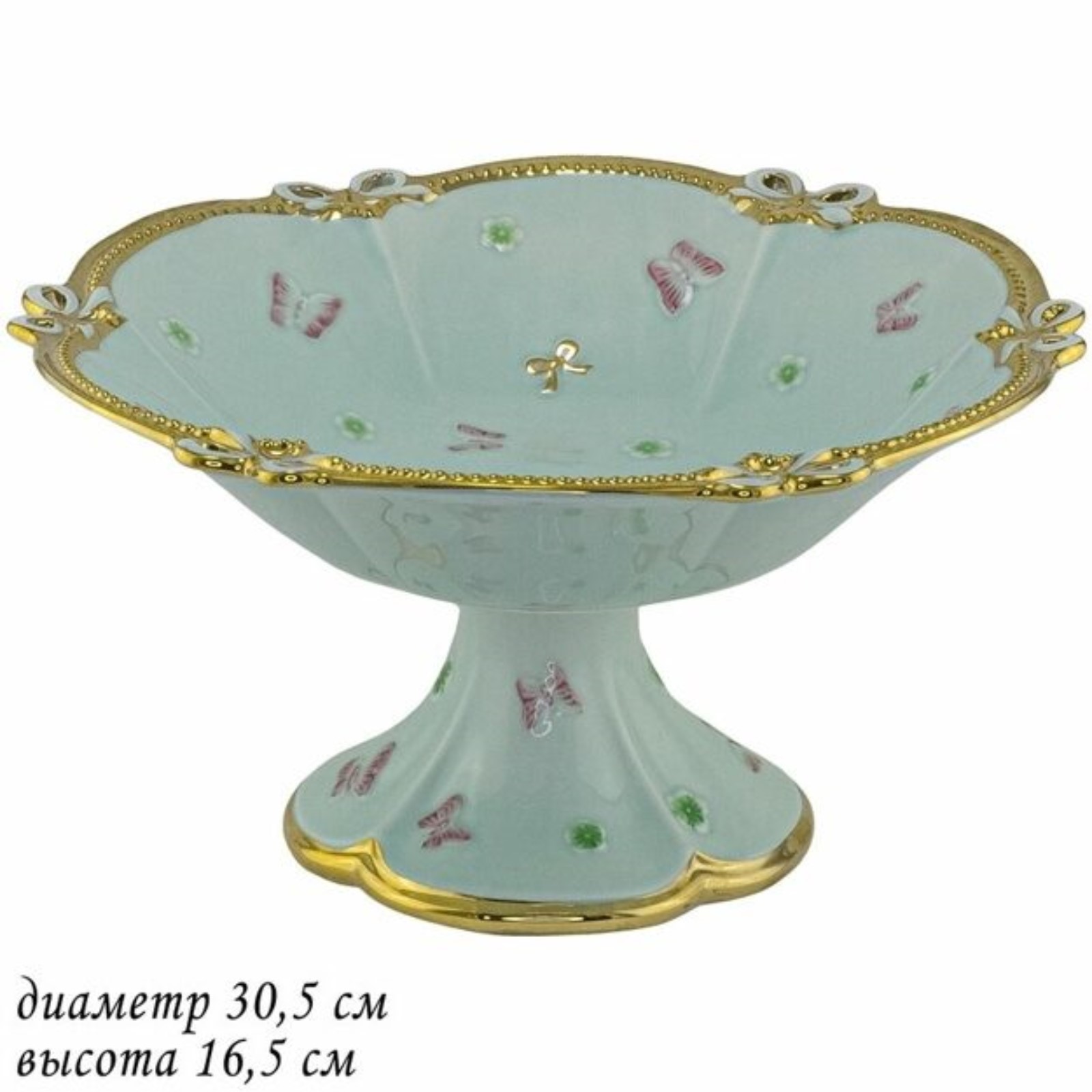Фруктовница lenardi «бабочки», на ножке, 30.5 см, цвет ментол.