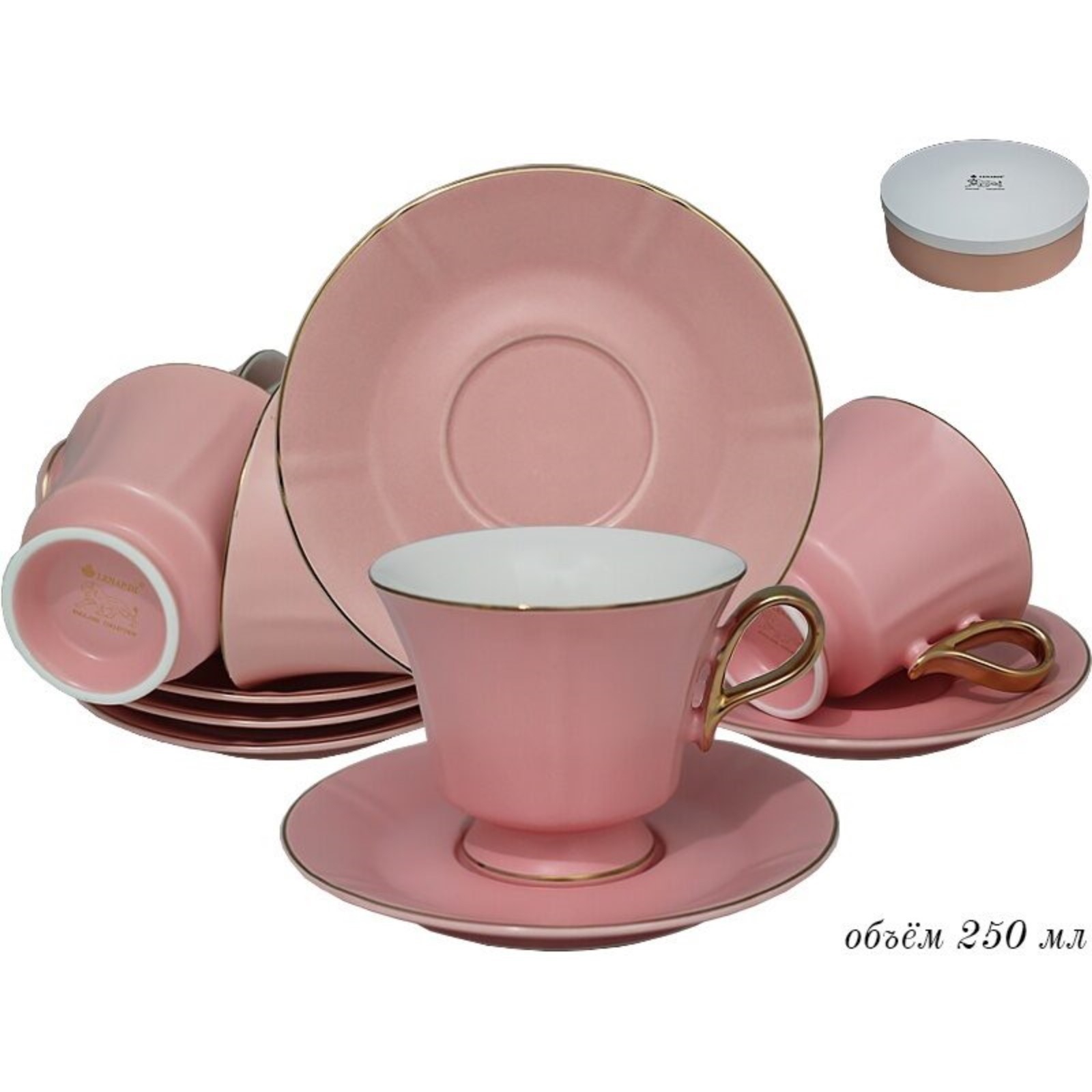 Чайный набор lenardi, 12 предметов. Изделие может иметь следующие несущественные дефекты: незначительный скол краски;прерывание и наплыв рисунка;наличие полосы на рисунке;потёртости и наплыв золотой краски на внутренней стороне;небольшие потёртости и царапины на глазури;засорения под глазурью;плотные вздутия глазури на внутренней поверхности;натёк глазури;наличие мушек (чёрных точек);неровность внутреннего отверстия;отклеивание страз;потёртость упаковки в уголках. Данные недостатки не влияют на свойства изделия при использовании. Цвет: Розовый Количество персон: 6 В наборе, шт.: 12 Объём, мл: 250 Тематика: Полоски, полоса Крышка: Нет Материал: Фарфор Наличие подставки: Нет Можно мыть в посудомоечной машине: Нет Можно использовать в СВЧ-печи: Нет Текстура: С рельефом Тип: Чайный сервиз Особенности: С золотой отводкой Матовая поверхность: Нет  развернуть описание ▼