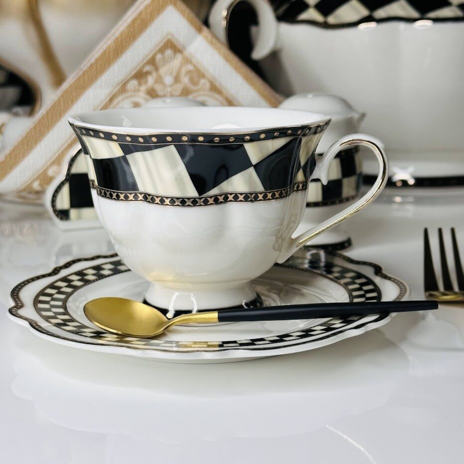 Чайный набор lenardi «тристан», 12 предметов. Изделие может иметь следующие несущественные дефекты: незначительный скол краски;прерывание и наплыв рисунка;наличие полосы на рисунке;потёртости и наплыв золотой краски на внутренней стороне;небольшие потёртости и царапины на глазури;засорения под глазурью;плотные вздутия глазури на внутренней поверхности;натёк глазури;наличие мушек (чёрных точек);неровность внутреннего отверстия;отклеивание страз;потёртость упаковки в уголках. Данные недостатки не влияют на свойства изделия при использовании. Цвет: Чёрный Цвет: Белый Количество персон: 6 В наборе, шт.: 12 Объём, мл: 240 Тематика: Геометрия Крышка: Нет Материал: Фарфор Наличие подставки: Нет Можно мыть в посудомоечной машине: Нет Можно использовать в СВЧ-печи: Нет Текстура: С рельефом Тип: Чайный сервиз Особенности: Без особенностей Матовая поверхность: Нет Серия: Тристан Серия: Lenardi Тристан  развернуть описание ▼