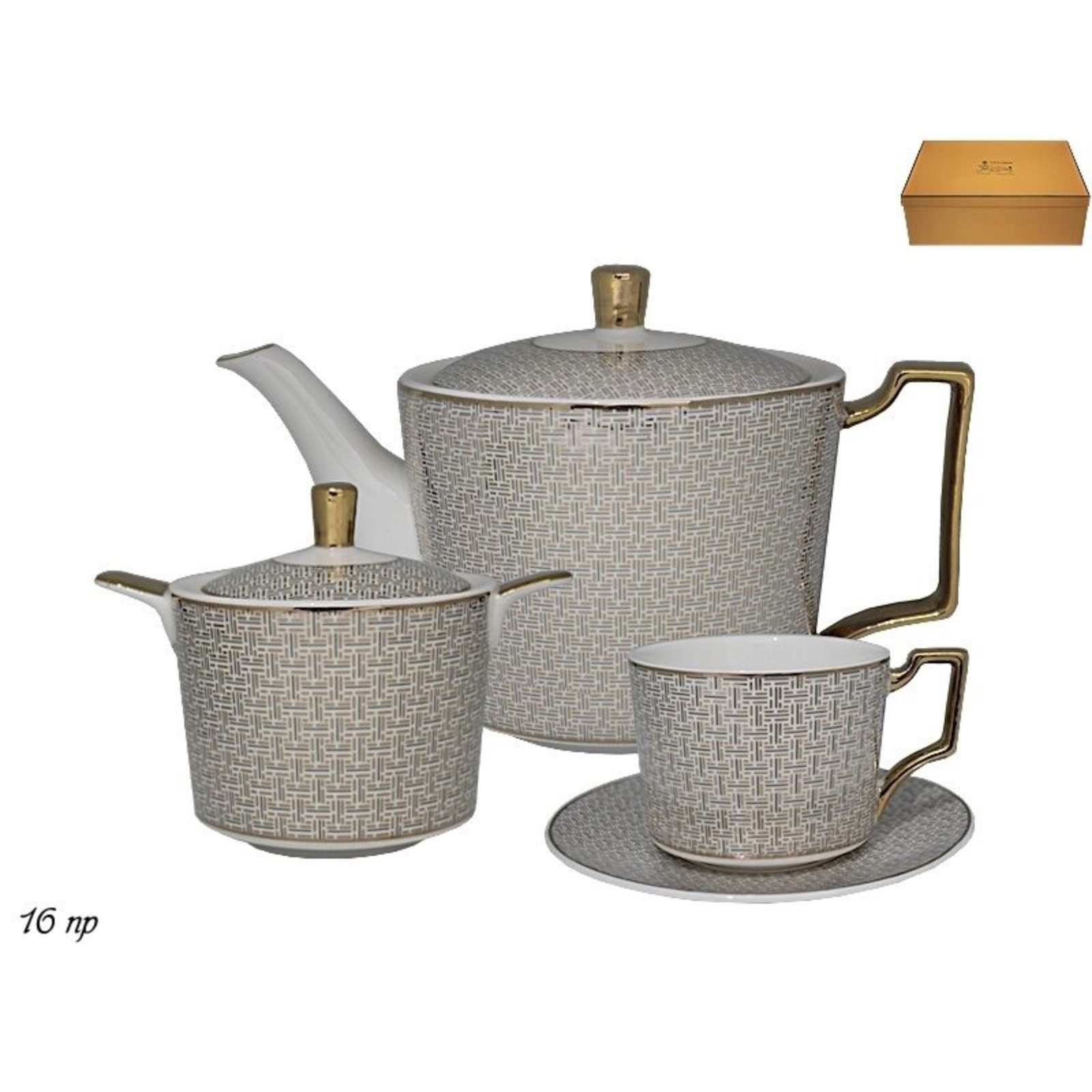 Чайный сервиз lenardi, 250 мл, 16 предметов. Изделие может иметь следующие несущественные дефекты: незначительный скол краски;прерывание и наплыв рисунка;наличие полосы на рисунке;потёртости и наплыв золотой краски на внутренней стороне;небольшие потёртости и царапины на глазури;засорения под глазурью;плотные вздутия глазури на внутренней поверхности;натёк глазури;наличие мушек (чёрных точек);неровность внутреннего отверстия;отклеивание страз;потёртость упаковки в уголках. Данные недостатки не влияют на свойства изделия при использовании. Цвет: Серый Количество персон: 6 В наборе, шт.: 16 Объём, мл: 250 Тематика: Узоры Крышка: Нет Материал: Фарфор Наличие подставки: Нет Можно мыть в посудомоечной машине: Нет Можно использовать в СВЧ-печи: Нет Текстура: Гладкая Тип: Чайный сервиз Особенности: С золотой отводкой Матовая поверхность: Нет  развернуть описание ▼