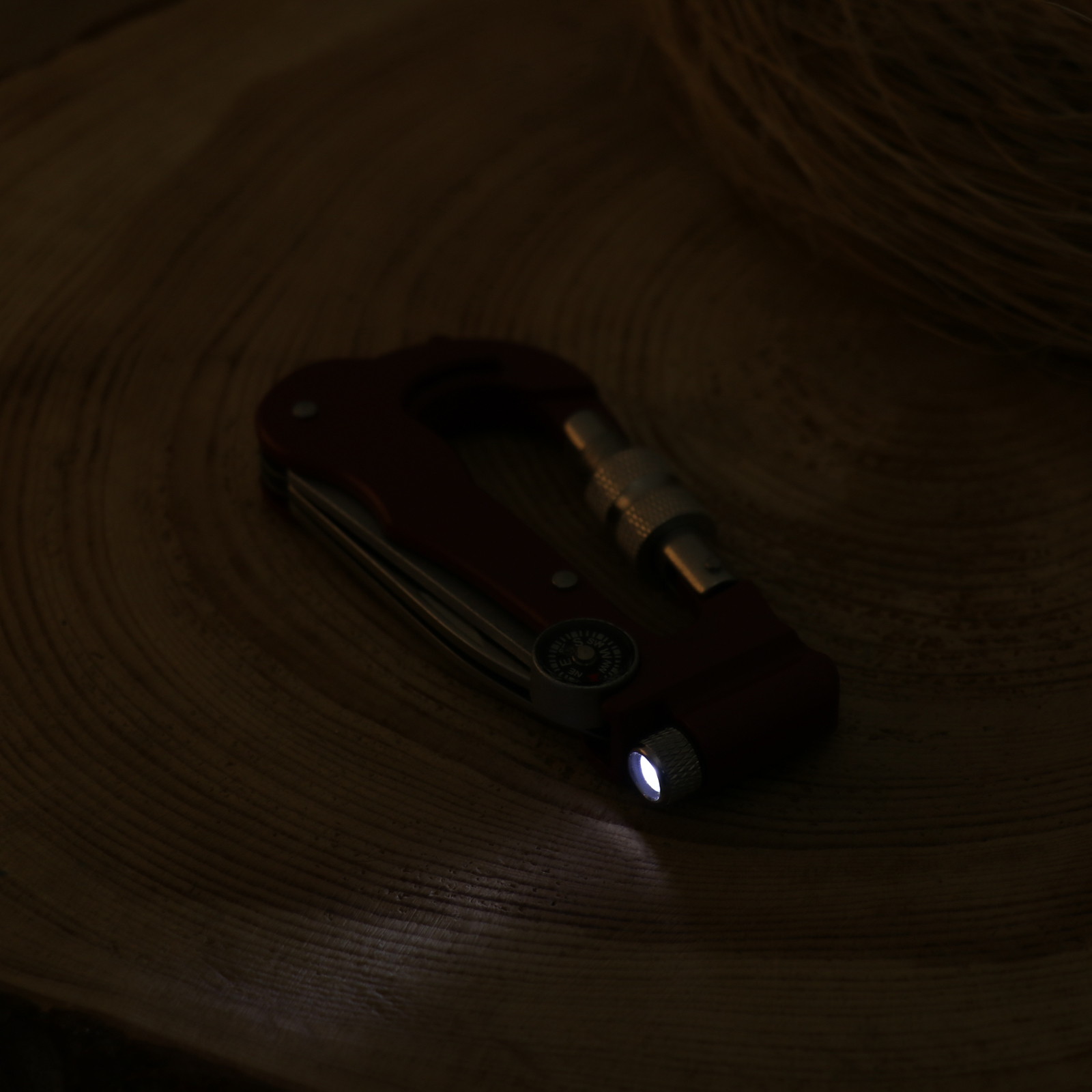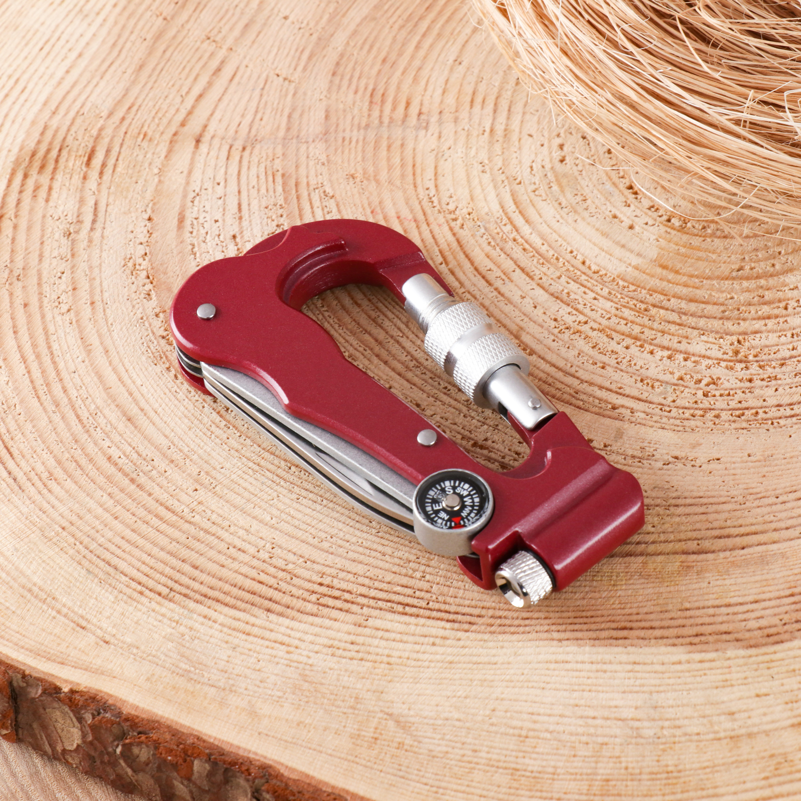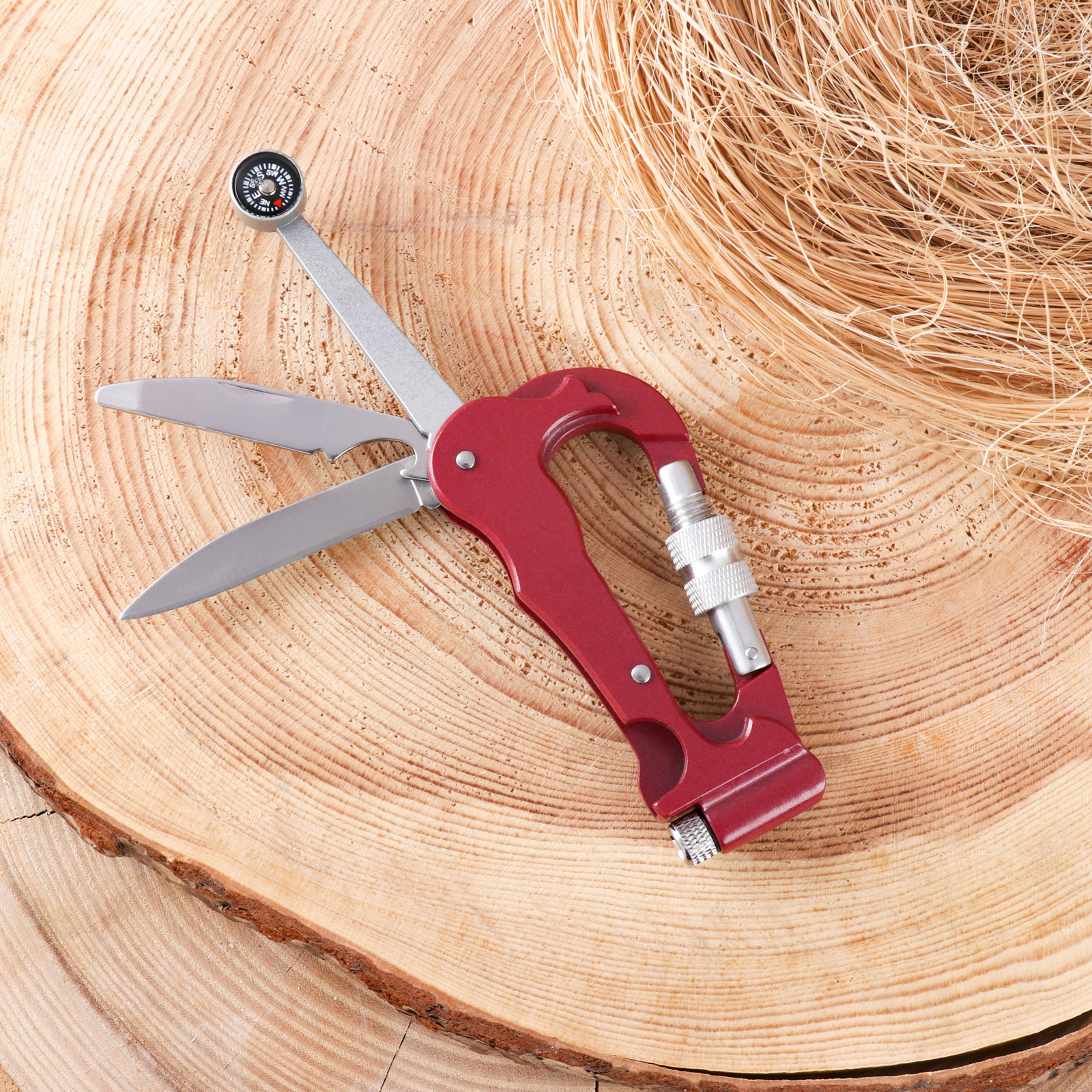 Нож складной 3в1 "карабин" 15см, клинок 61мм/2мм, с компасом и фонариком