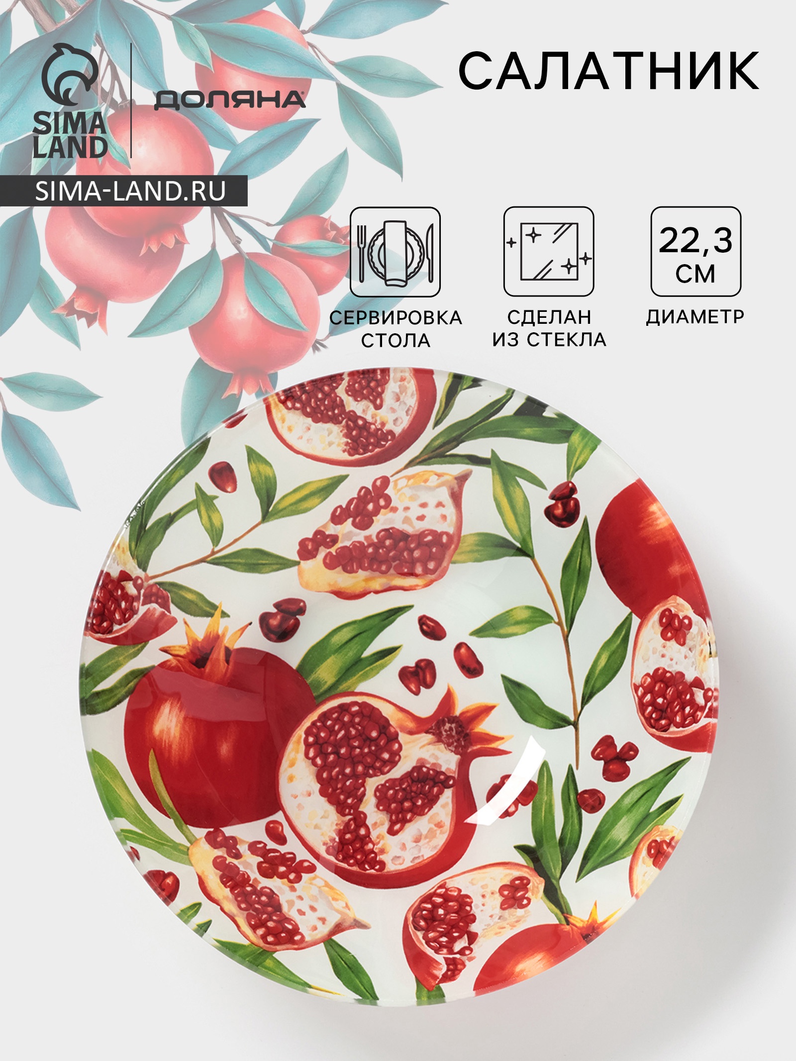 Салатник доляна «гранат», 1 л, D=22.3 см, стекло, рисунок
