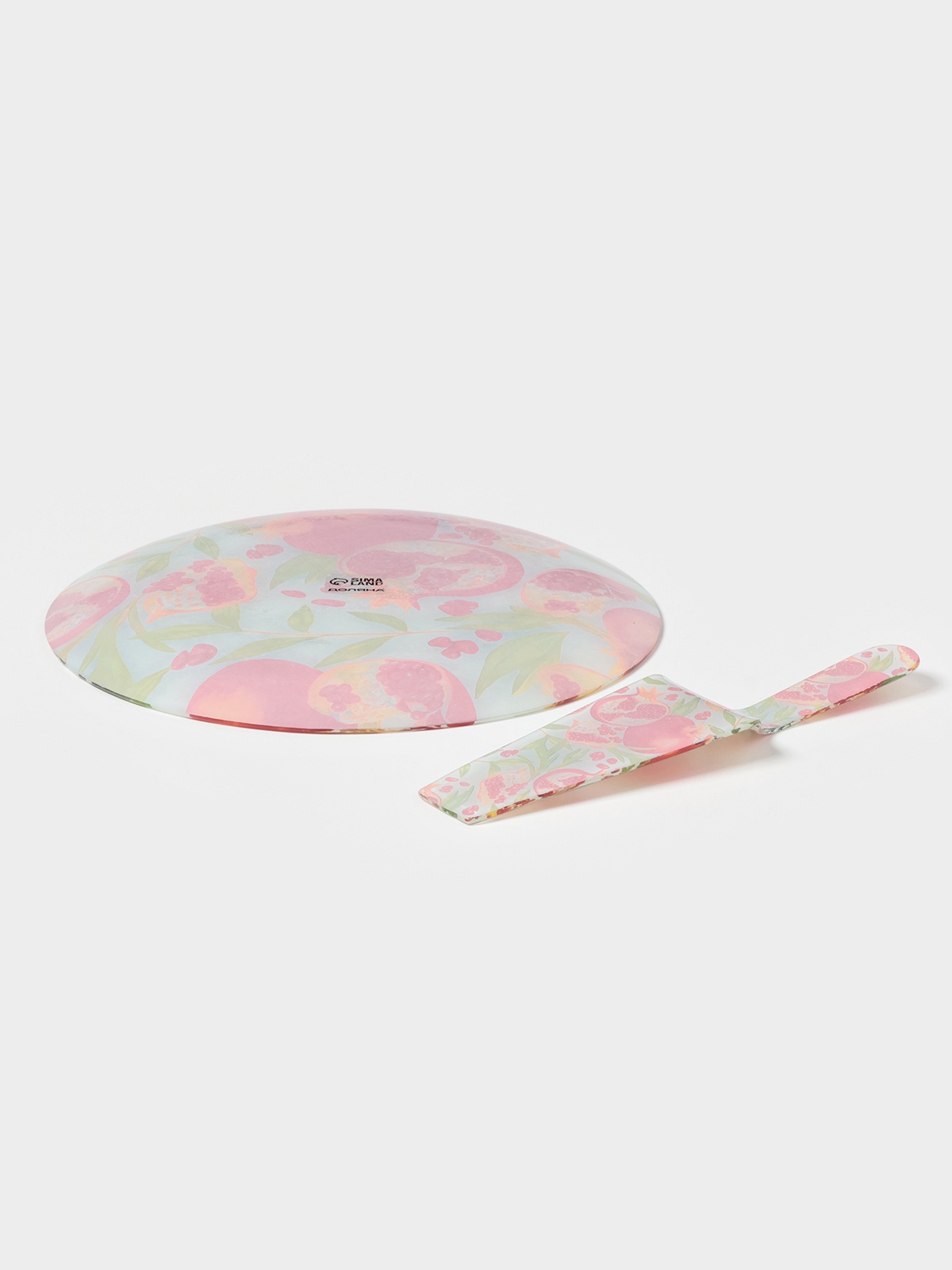 Тортовница с лопаткой доляна «гранат», 2 предмета: блюдо d=30 см, лопатка 26.5 7 2 см, стекло, рисунок. Этот набор для торта с рисунком Граната – это не просто посуда, а настоящее украшение для вашего стола. В набор входит стеклянное блюдо диаметром 30 см и лопатка для торта, чтобы каждый десерт выглядел аппетитно и его было удобно подавать. Он создан для того, чтобы вы могли наслаждаться не только вкусом, но и красотой ваших кулинарных творений. Этот набор станет вашим незаменимым помощником при чаепитиях и торжествах. Преимущества: Нежный рисунок. Придает тортовнице особый шарм и делает сервировку более изысканной.Полный комплект. Включает блюдо для торта и лопатку для удобной подачи.Оптимальный размер. Диаметр блюда 30 см подходит для тортов разных размеров.Универсальность. Идеально подходит для подачи тортов, пирогов, пирожных и других десертов.Практичность. Удобно использовать и легко мыть.Надежность. Изготовлен из прочного стекла.Набор:Да|Цвет:Разноцветный|Форма:Круглая|Диаметр, см:30|В наборе, шт.:2|Количество предметов в наборе:2|Ширина лопатки, см:7|Длина лопатки, см:26.5|Тематика:Фрукты|Рисунок:Да|Материал:Стекло|Вид тарелки:Плоская|Можно мыть в посудомоечной машине:Да|Можно использовать в СВЧ-печи:Нет|Текстура:Гладкая|Особенности:Без особенностей|Страна:Китай  развернуть описание ▼