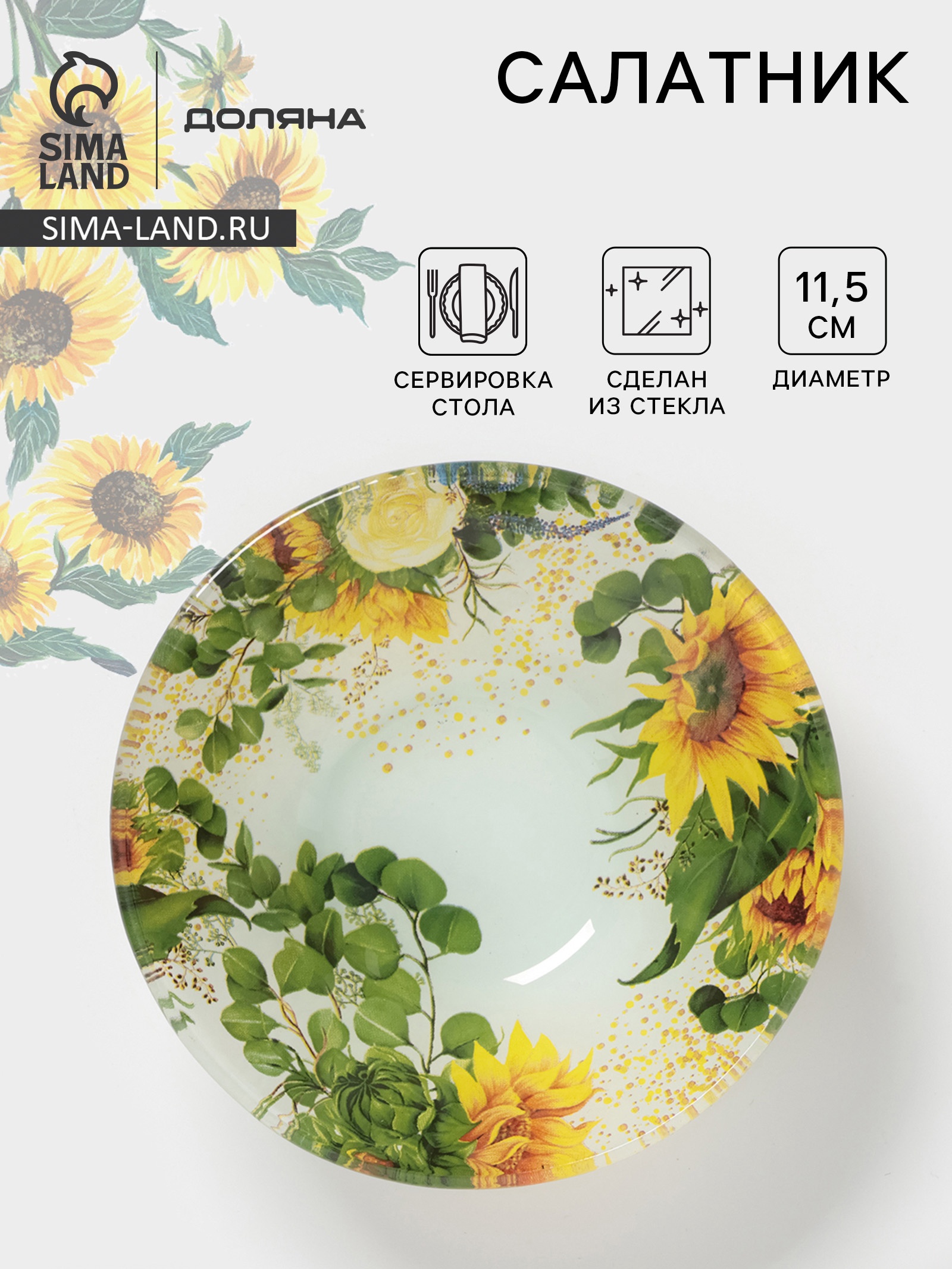 Салатник доляна «подсолнухи», 150 мл, D=11.5 см, стекло, рисунок