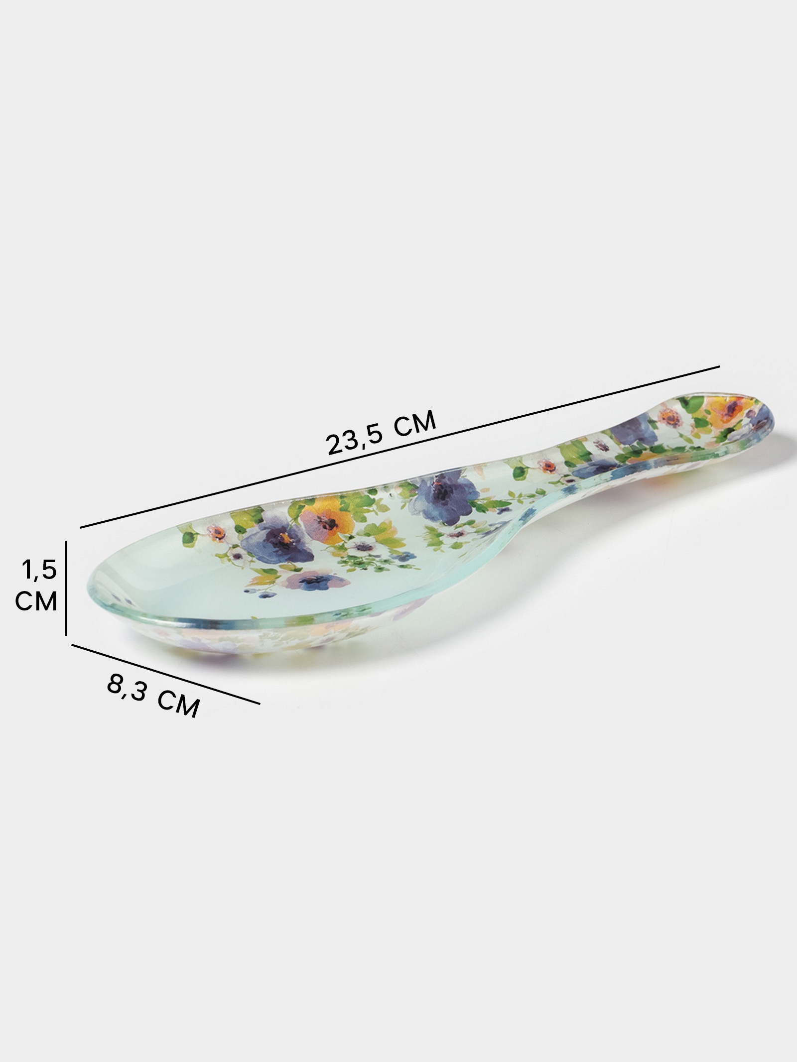 Подставка под ложку доляна «букет незабудок», 23.5 8.3 1.5 см, стекло, рисунок. Эта подставка для ложки с рисунком Букета незабудок длиной 23,5 см - это не только полезный, но и красивый аксессуар для вашей кухни. Она предназначена для того, чтобы ваша рабочая поверхность оставалась чистой во время готовки, и также добавляла яркий акцент в интерьер. Эта подставка станет вашим надежным помощником в процессе приготовления пищи и защитит столешницу от загрязнений. Преимущества: Красивый рисунок. Добавляет стиля и уюта в вашу кухню.Оптимальная длина. 23,5 см подходит для размещения большинства кухонных приборов.Практичность. Защищает поверхность от капель и загрязнений.Универсальность. Подходит для ложек, половников и других кухонных инструментов.Удобство. Легко мыть и хранить.Надежность. Изготовлена из прочного стекла.Цвет:Разноцветный|Рисунок:Да|Тематика праздника:8 Марта|Материал:Стекло|Можно мыть в посудомоечной машине:Да|Страна:Китай  развернуть описание ▼