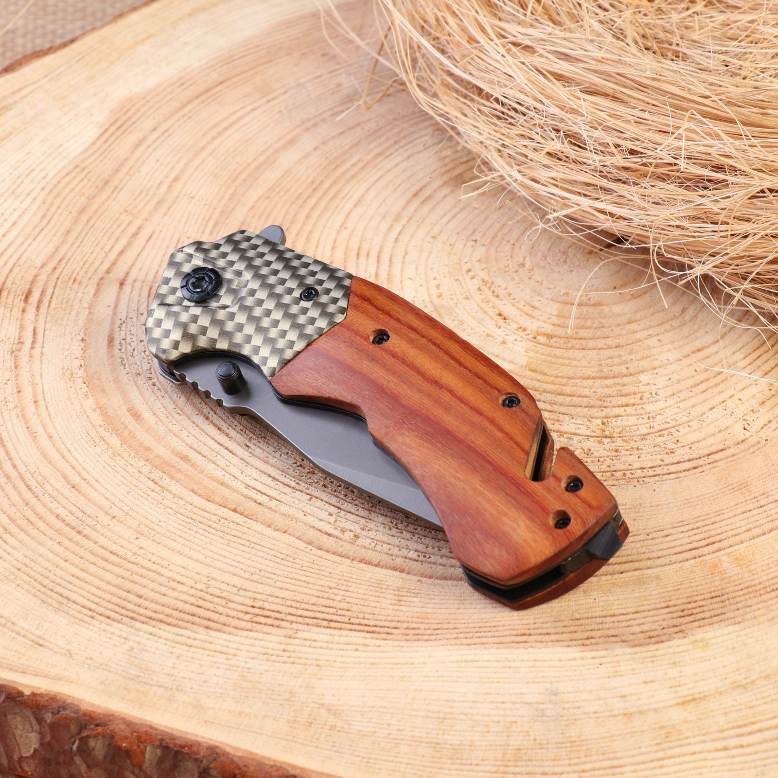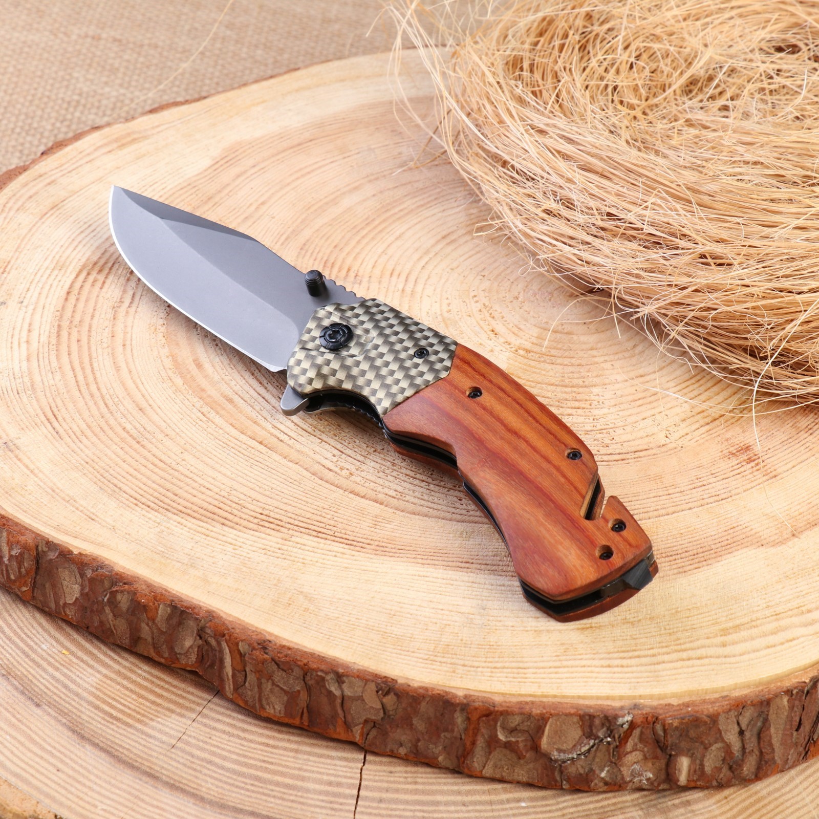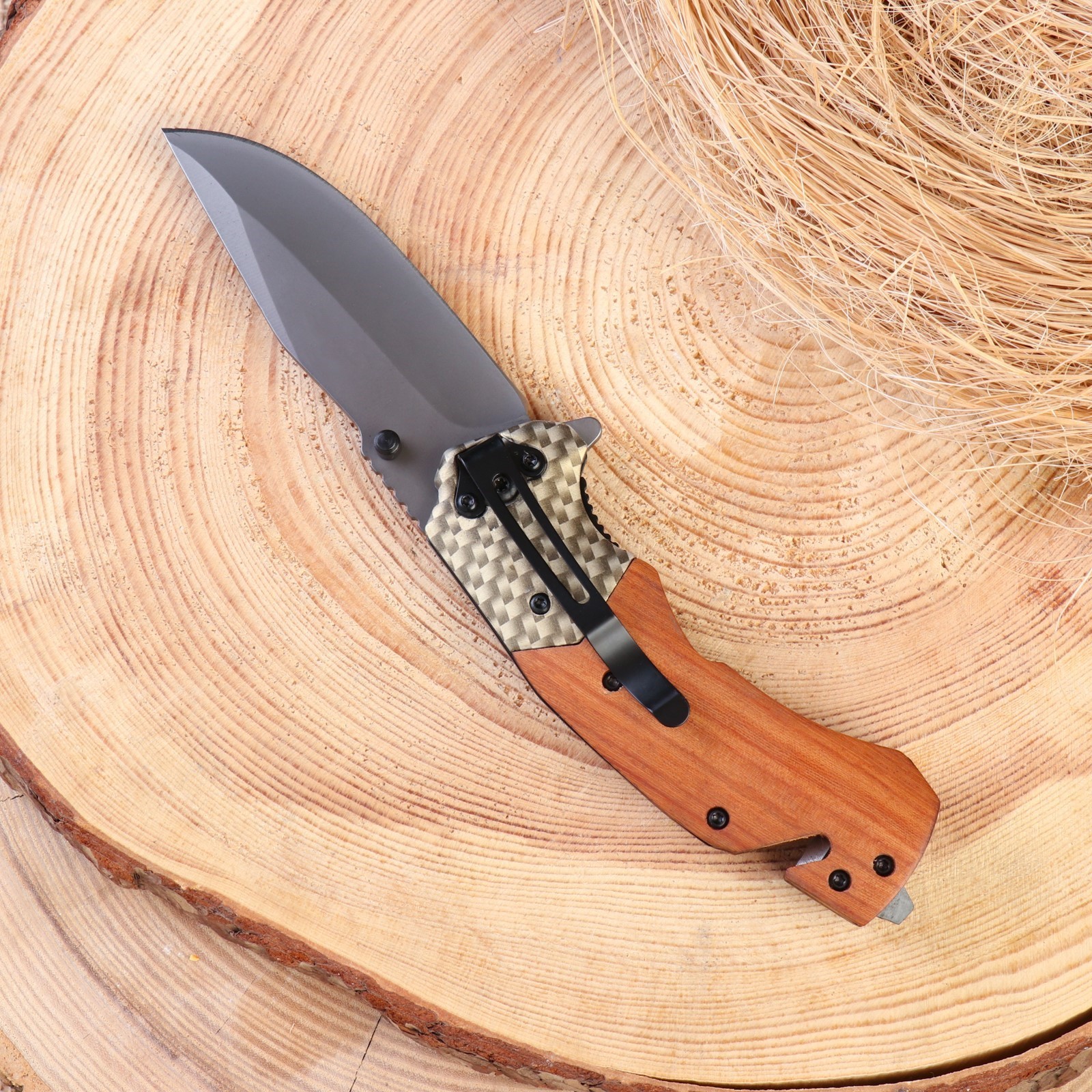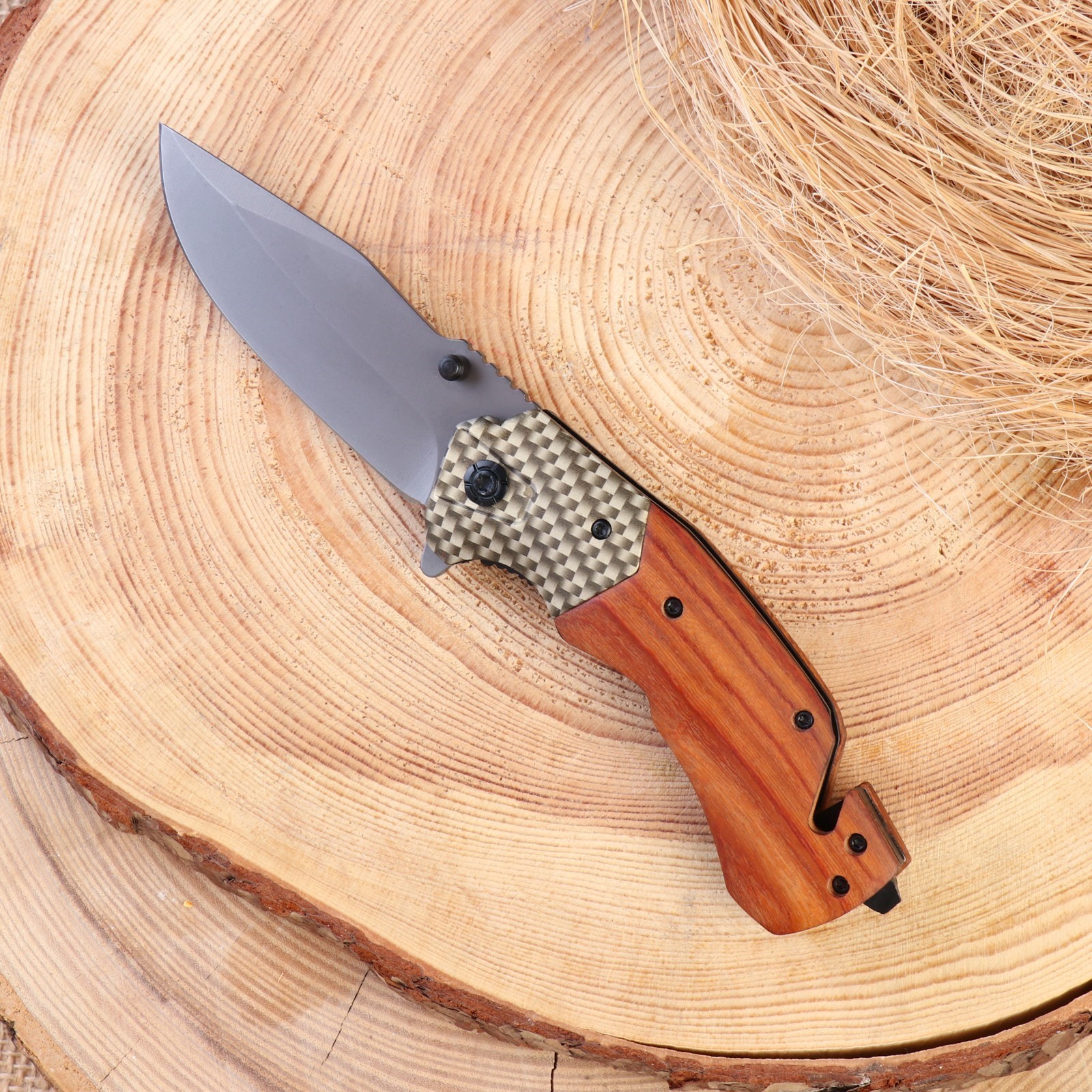 Нож "стропорез" 20,2см, клинок 85мм/3мм, рукоять дерево. Длина лезвия, см: 8.5 Твёрдость лезвия, HRC: 48 Материал ручки: Дерево Фиксатор: Да Тип ножа: Складной неавтоматический  развернуть описание ▼