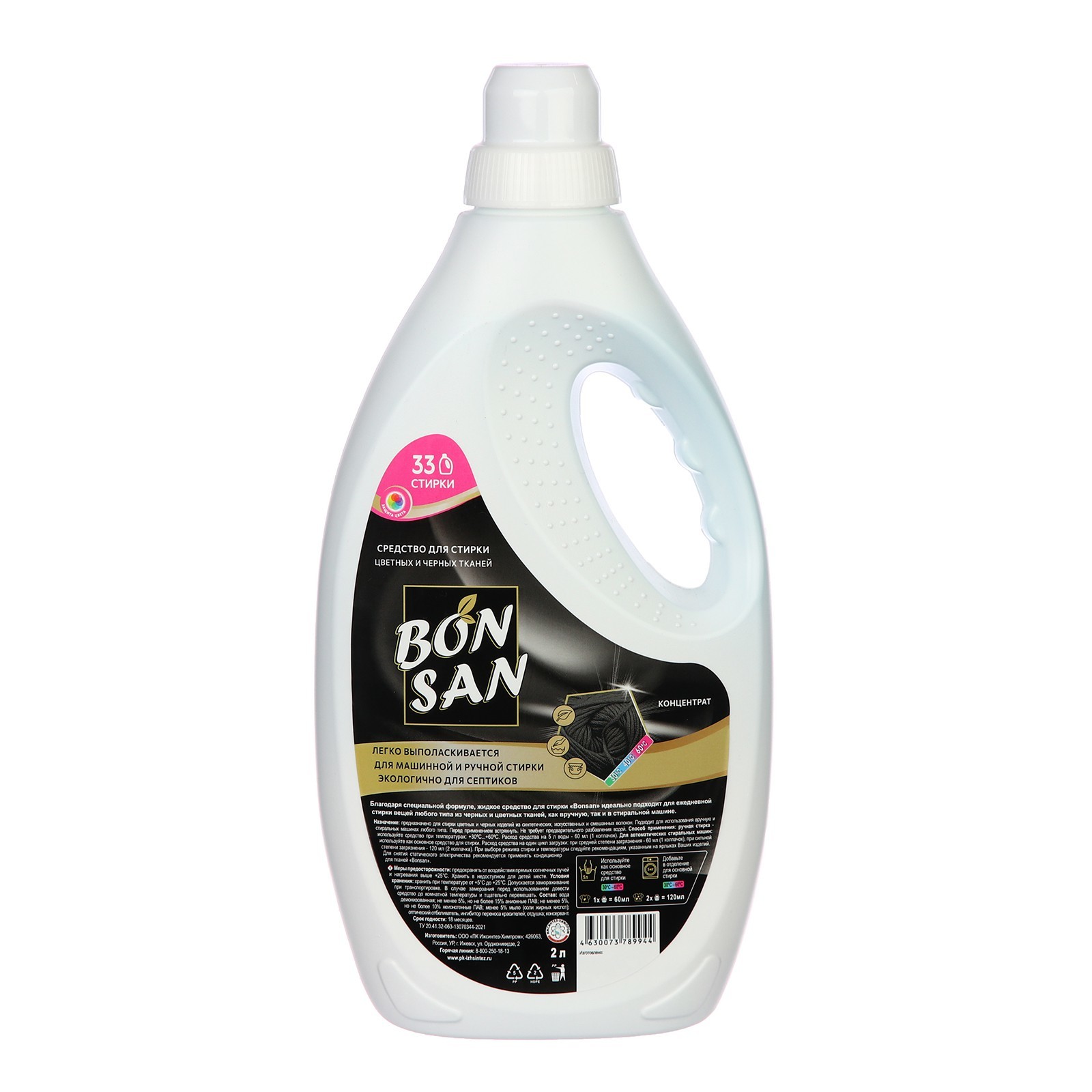 Средство для стирки цветных и черных тканей bonsan, 2 л пэ. «Bonsan Средство для стирки цветных и черных тканей» - идеальное решение для стирки ваших вещей. Этот продукт разработан специально для сохранения цвета и защиты тканей от выцветания. Уникальная формула средства позволяет эффективно удалять загрязнения, сохраняя яркость и глубину цвета. “Bonsan” подходит как для машинной, так и ручной стирки и может использоваться для всех типов цветных и черных тканей. parts count: 0 Объём, л: 2 Вес, г/Объём, мл: 2000 Форма выпуска: Жидкость Назначение: Для чёрных тканей Назначение: Для цветных тканей Вид стирки: Для всех видов стирки : 0 Температурное ограничение: Нет Особенности средства: Антистатический эффект Особенности средства: Антибактериальный эффект  развернуть описание ▼