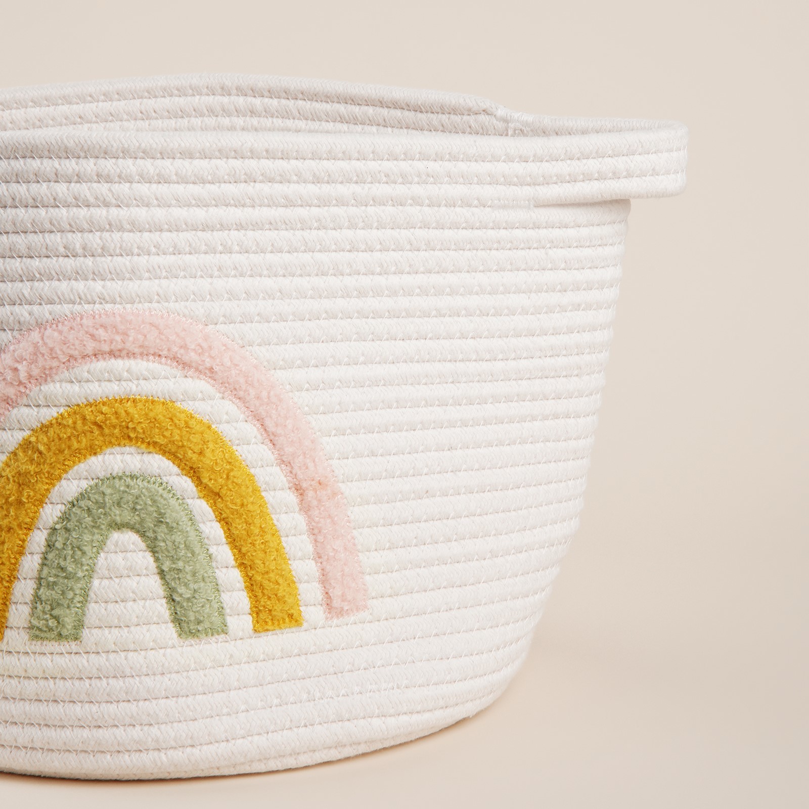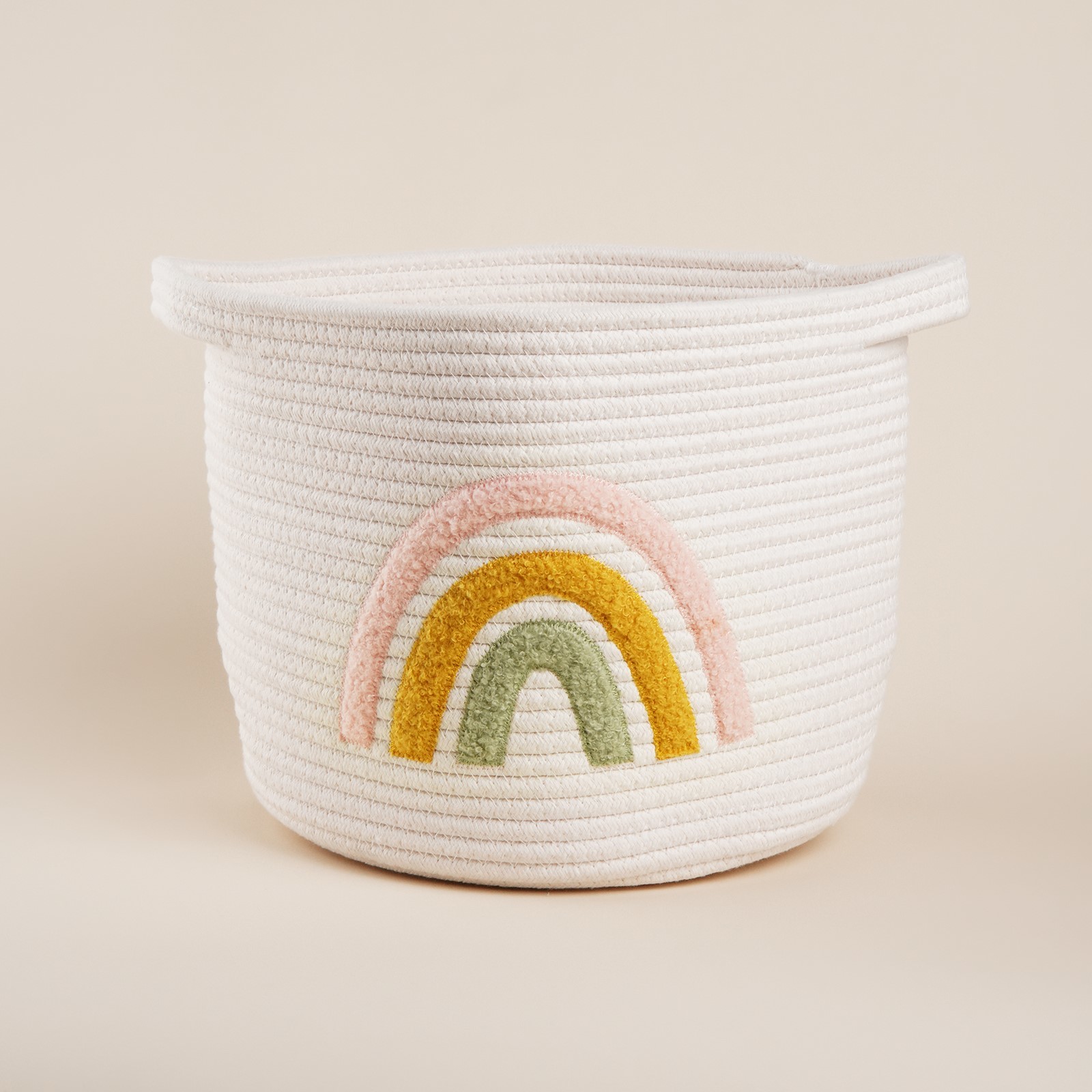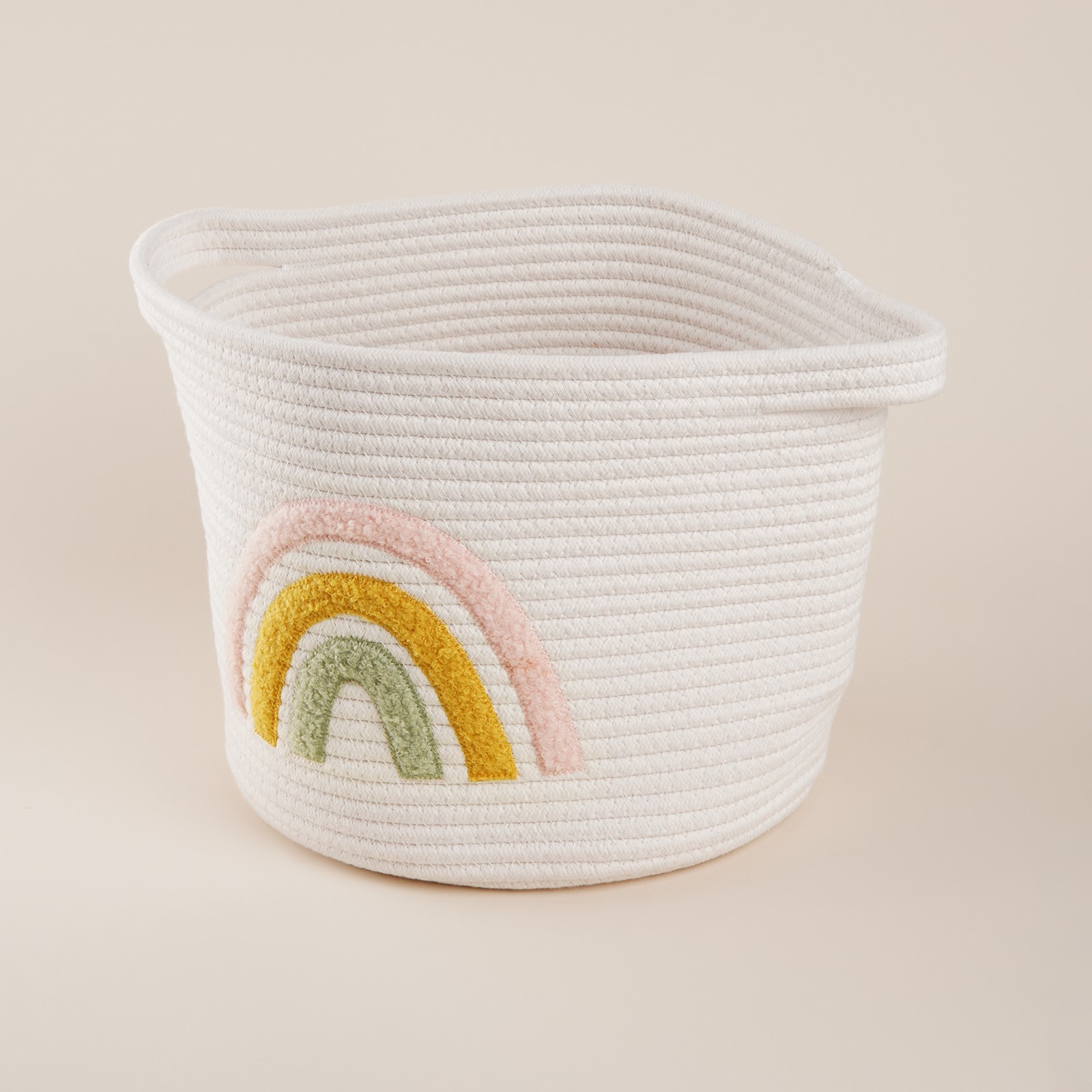 Корзина для хранения ручного плетения радуга, размер 30х40х25 см. Цвет: Белый Форма: Круглая Ширина, см: 30 Высота, см: 25 Глубина, см: 40 Крышка: Нет Материал: Хлопок Основной материал: Текстиль Форма: Круг, шар, цилиндр  развернуть описание ▼