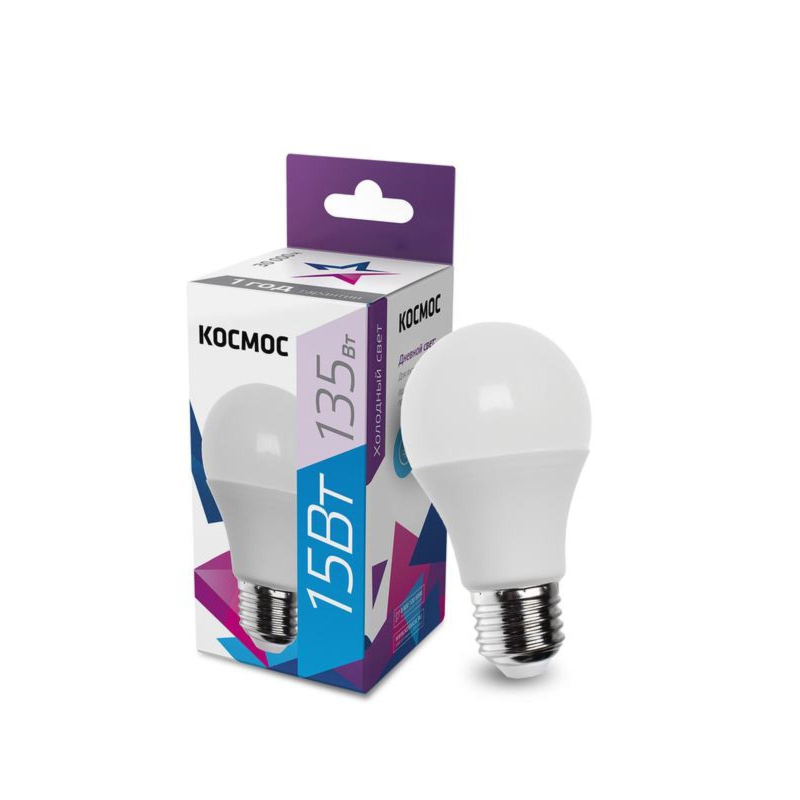 Лампа светодиодная a60 15вт 6500к e27 220в космос lkecled15wa60e2765.