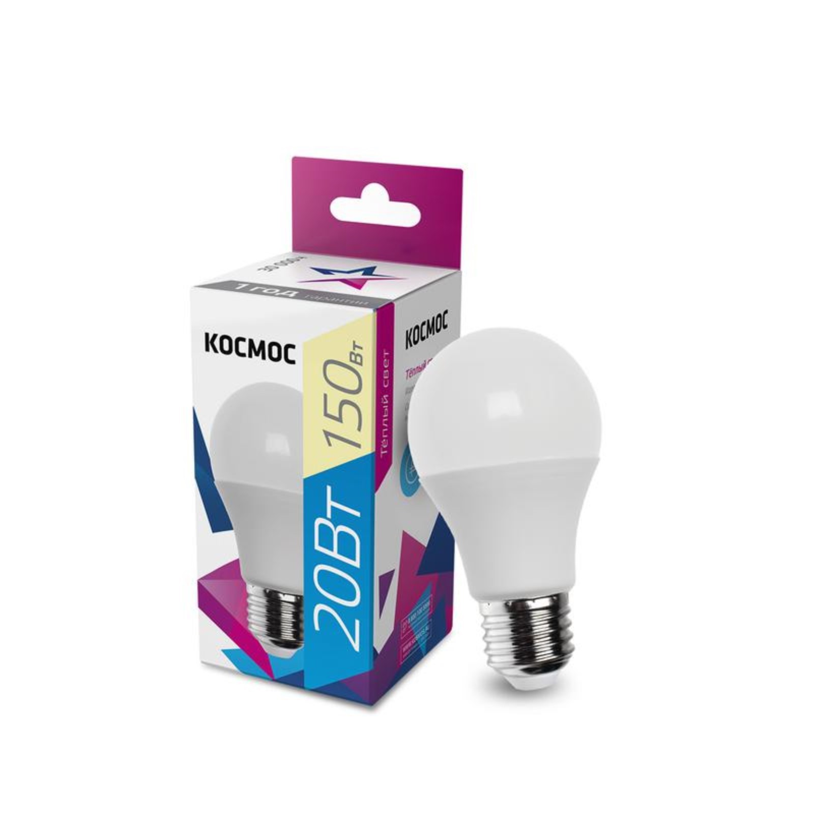 Лампа светодиодная a60 20вт 3000к e27 220в космос lkecled20wa60e2730. Цвет свечения: Белый Вид лампы: Светодиодная Цоколь: E27 Мощность, Вт: 20 Напряжение, В: 220 Напряжение, В: 240 Световой поток, лм: 1800 Цветовая температура: 3000К Форма лампы: Шар Диммируемая: Нет Класс энергоэффективности: A  развернуть описание ▼