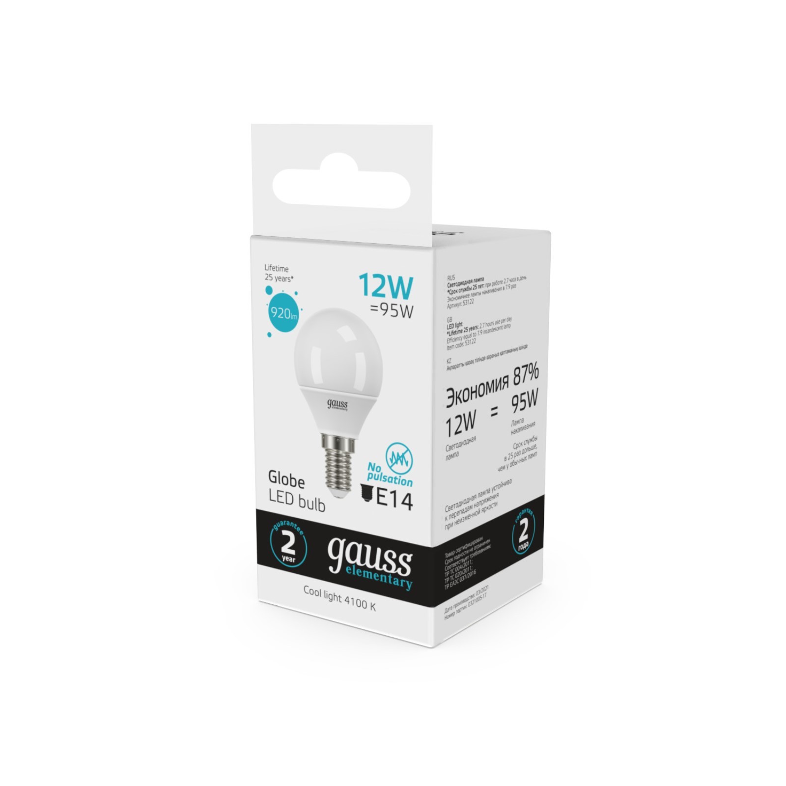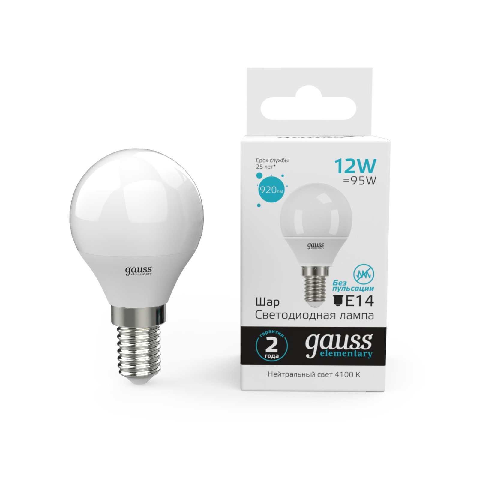 Лампа светодиодная elementary 12вт шар 4100к нейтр. бел. e14 920лм gauss 53122. Цвет свечения: Белый Вид лампы: Светодиодная Цоколь: E14 Мощность, Вт: 12 Напряжение, В: 180 Напряжение, В: 240 Световой поток, лм: 920 Цветовая температура: 4100К Форма лампы: Сферическая типа Globe Диммируемая: Нет Класс энергоэффективности: A+  развернуть описание ▼