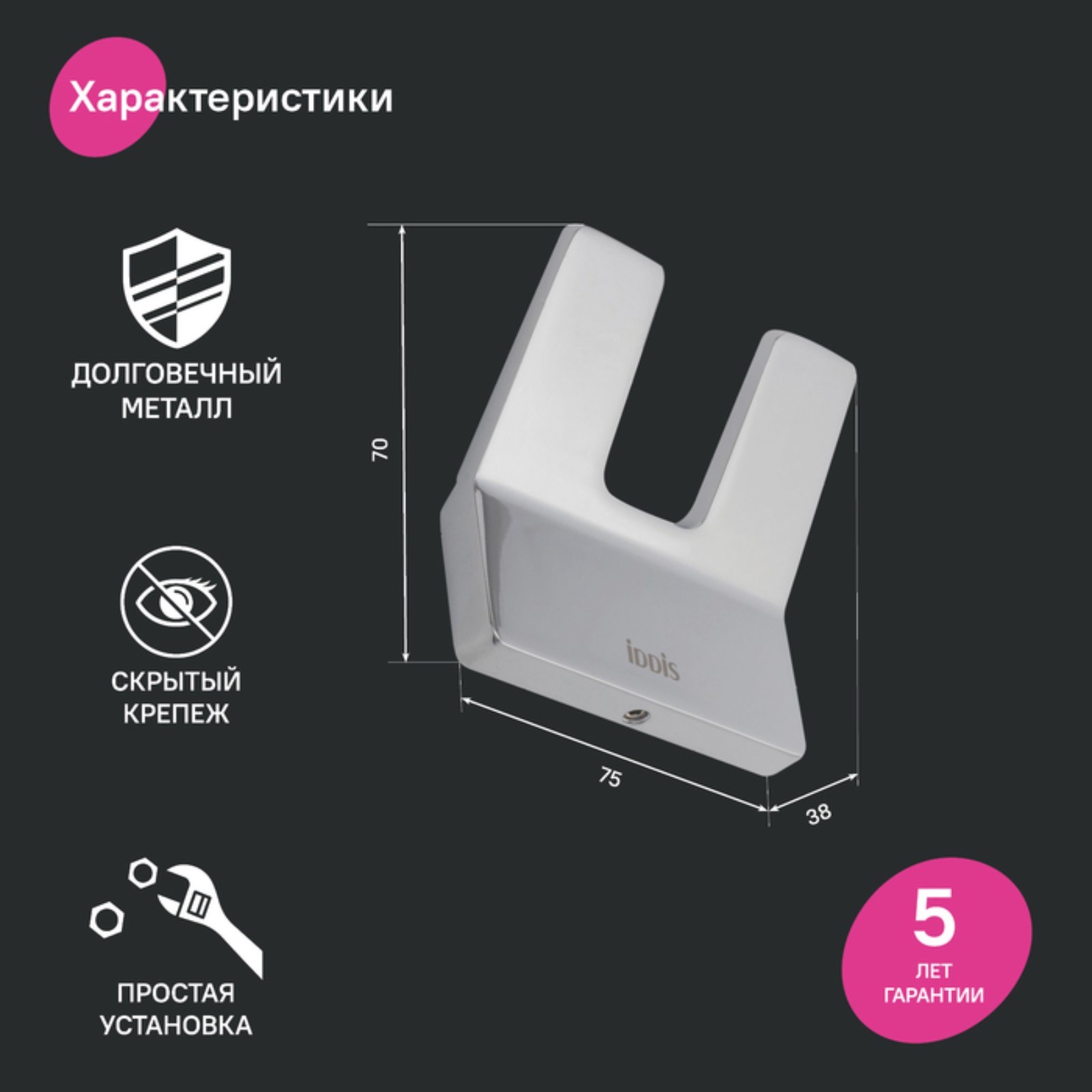 Крючок двойной Iddis Slide Slisc20i41, 75х38х70 мм, хром