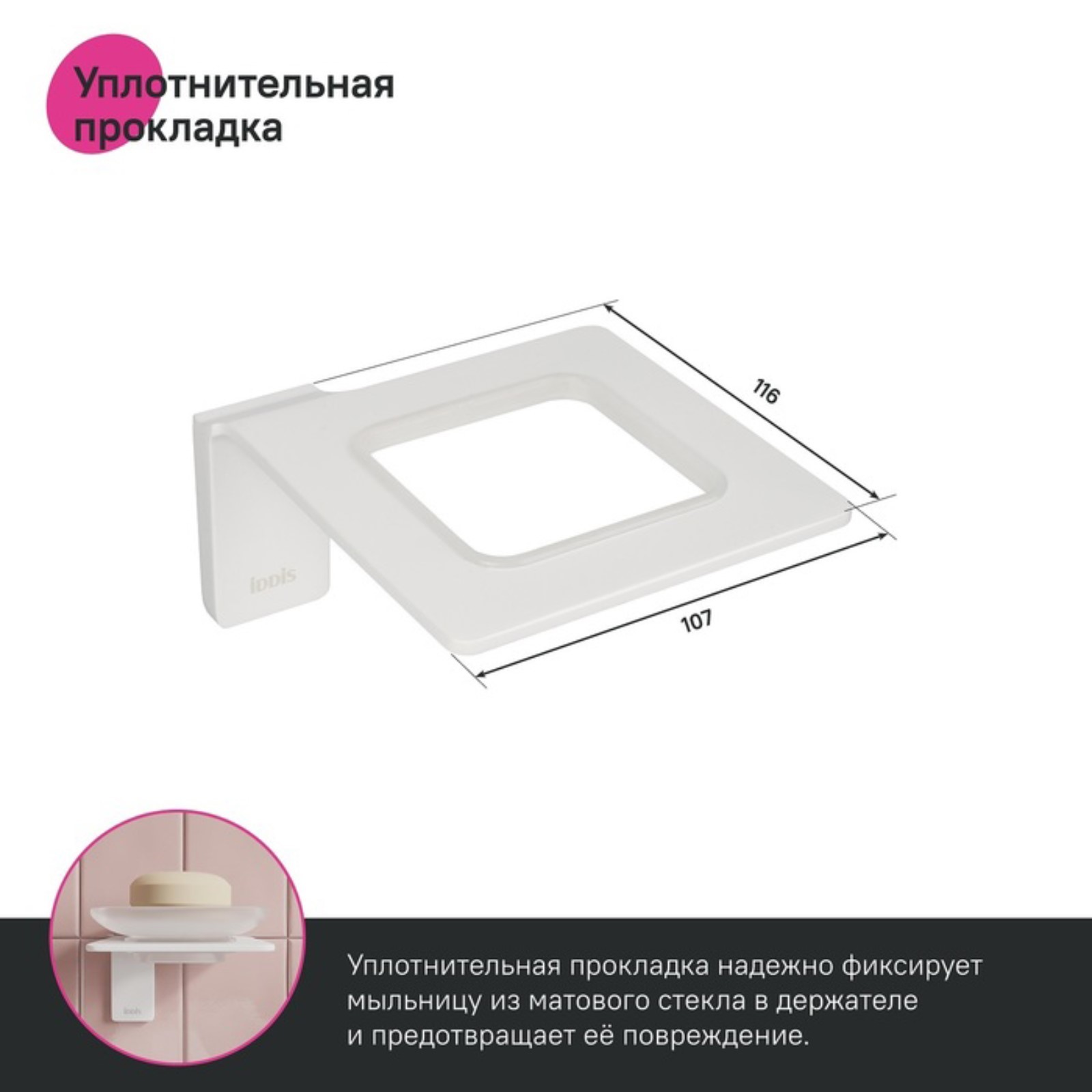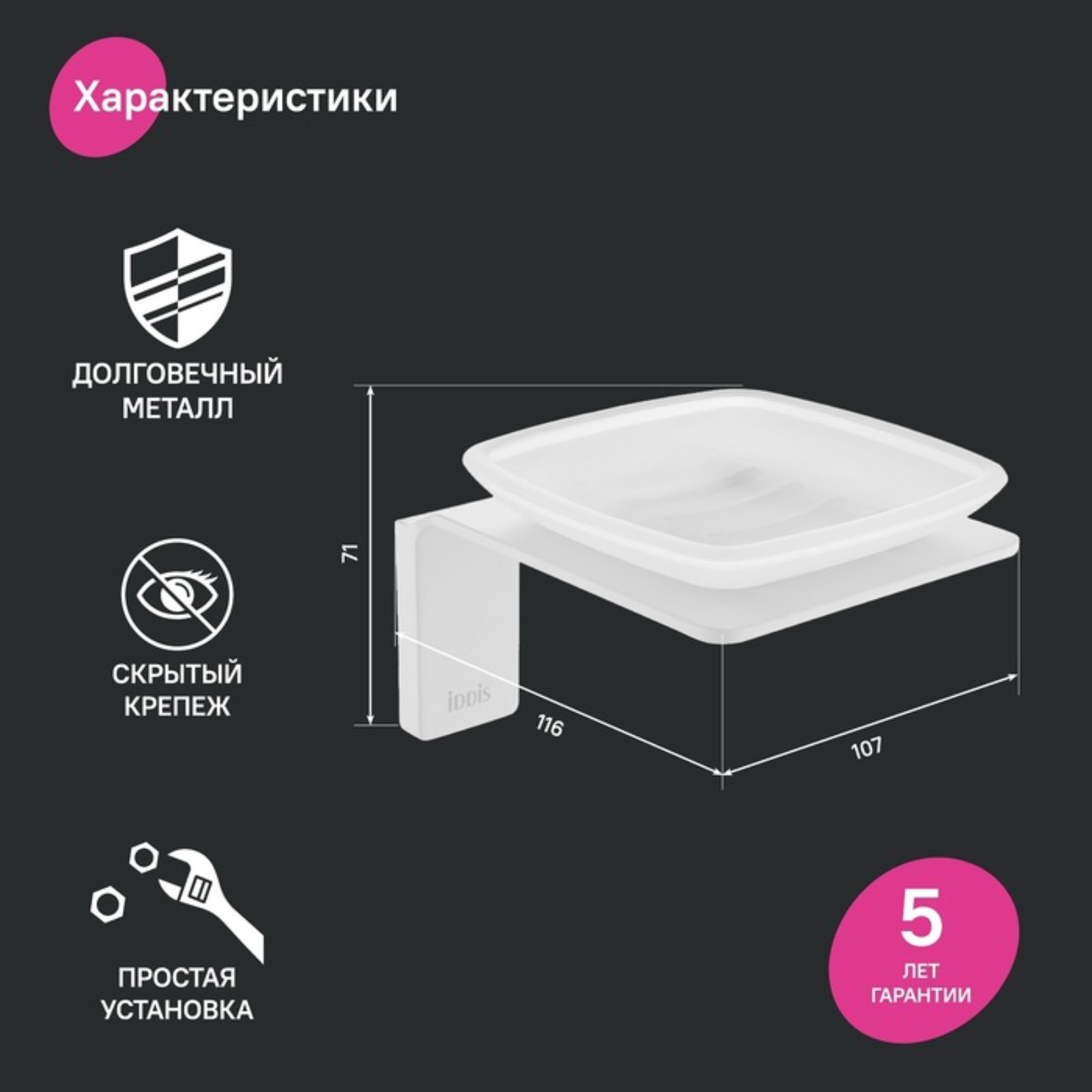 Мыльница Iddis Slide Sliwtg0i42, 107х116х71 мм, матовое стекло, белый матовый