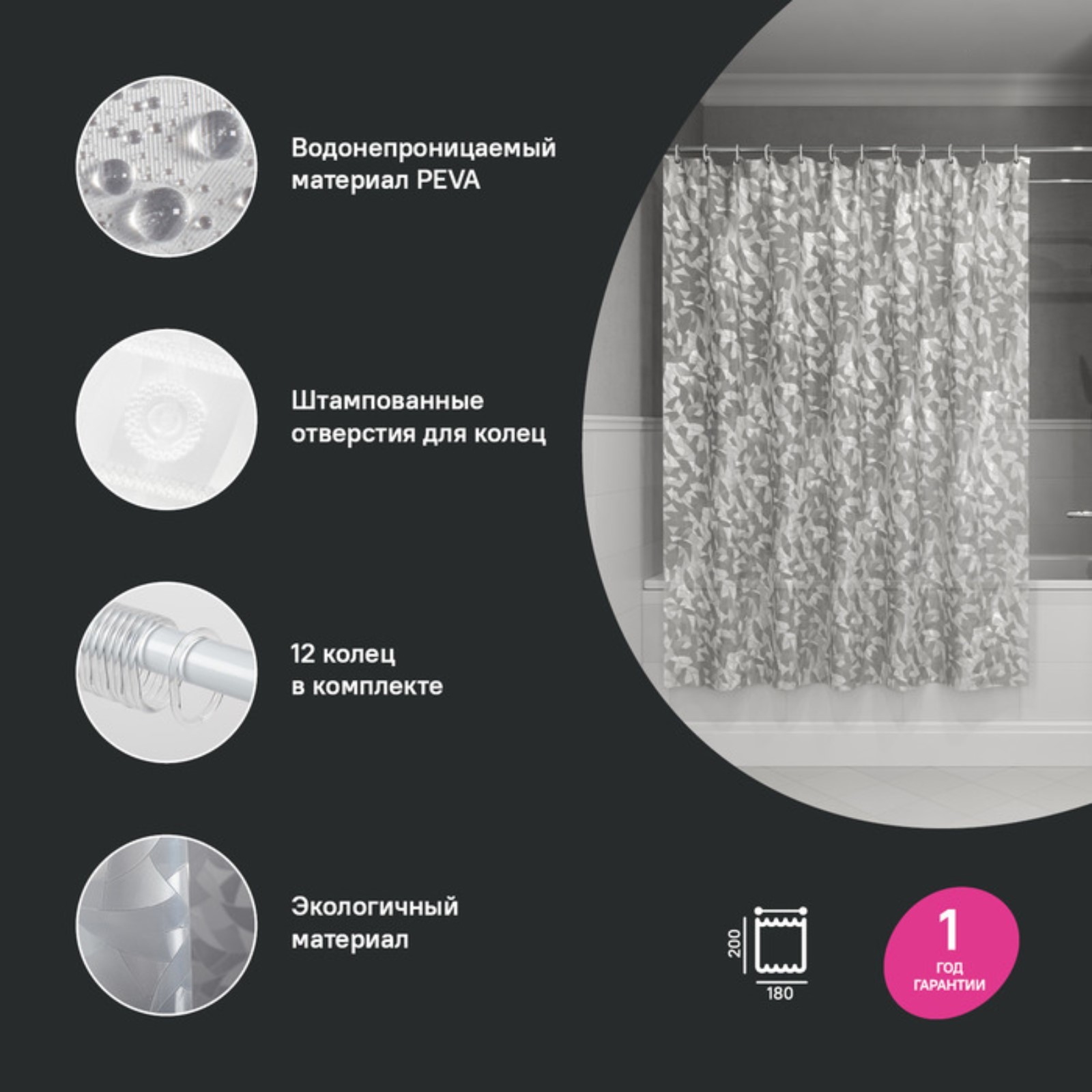 Штора для ванной комнаты Iddis Peva 3d P02pv18i11, 200х180 см