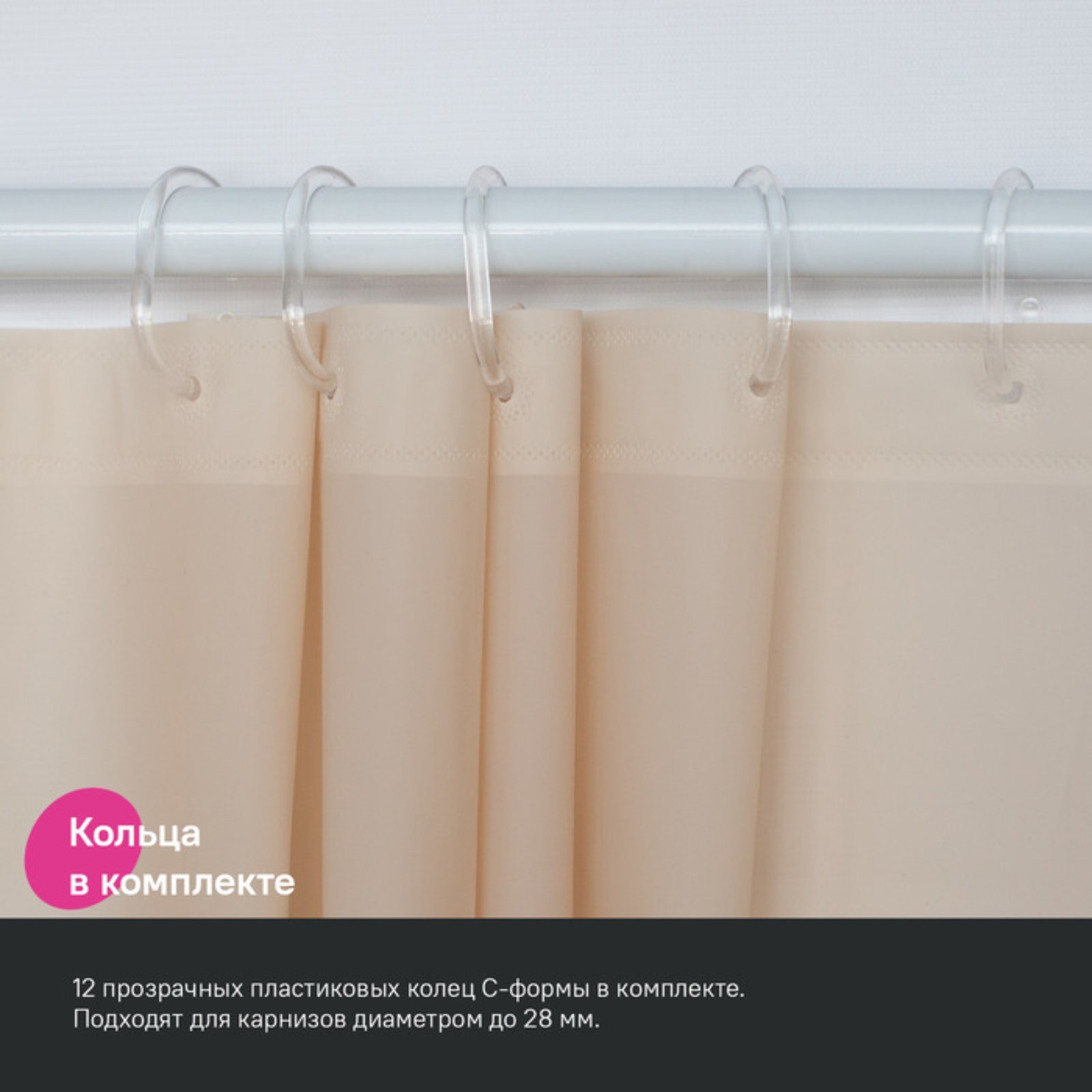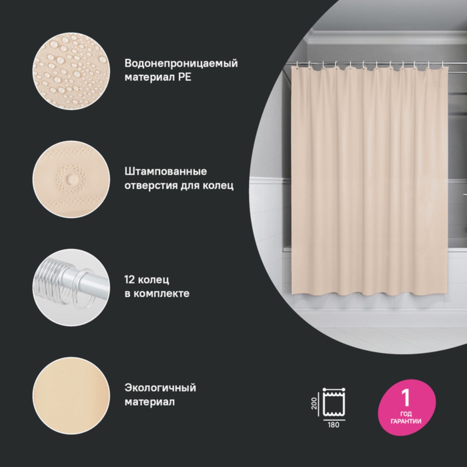 Штора для ванной комнаты Iddis, Pe P01pe18i11, 200х180 см, бежевый