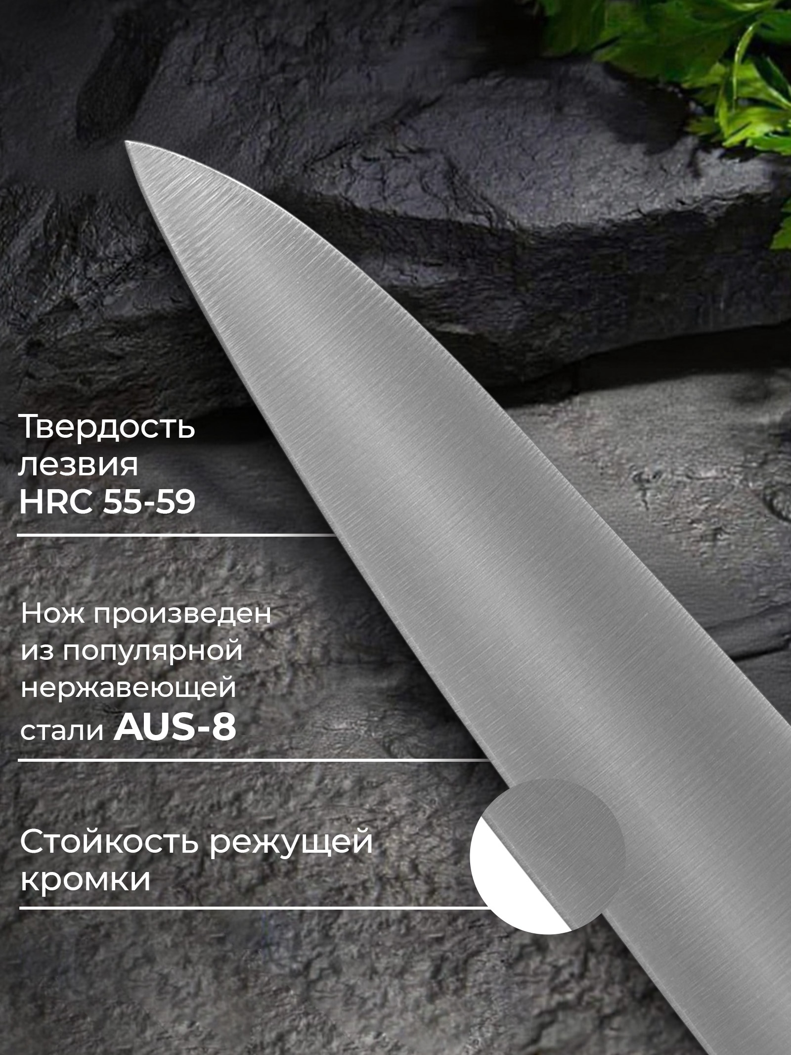 Нож кухонный универсальный magistro hinshitsu, нержавеющая сталь, лезвие 15.7 см, длина 29 см, чёрный. Ощутите универсальность и точность с ножом «Hinshitsu»! Универсальный нож Hinshitsu — это сочетание превосходной остроты, комфорта и стильного дизайна, созданное для того, чтобы вы легко справлялись с любой кулинарной задачей. Преимущества: Безупречное лезвие: изготовлено из высококачественной нержавеющей стали AUS-8, обеспечивая легкую и точную нарезку любых продуктов.Оптимальная длина: лезвие длиной 15,7 см идеально подходит для нарезки мяса, овощей, фруктов, хлеба и других продуктов, твердость лезвия HRC 55-59Эргономичная ручка: удобная ручка из АБС-пластика обеспечивает надежный захват и комфортное использование ножа.Прочность и долговечность: нож изготовлен из качественных материалов, гарантируя его долгий срок службы и отличную производительность.Элегантный стиль: черный цвет и лаконичный дизайн делают этот нож стильным дополнением к вашей кухне.Многофункциональность: нож отлично подходит для выполнения самых разных задач на кухне – от нарезки до измельчения.Легкость в уходе: нож легко моется и не требует особых условий хранения.С универсальным ножом Hinshitsu каждое приготовление пищи станет легким и приятным процессом! Позвольте себе наслаждаться качеством и удобством в каждом движении. Цвет:Чёрный|Длина лезвия, см:15.7|Материал ручки:АБС-пластик|Рисунок:Нет|Тип покрытия:Без покрытия|Материал лезвия:Нержавеющая сталь|Тип ножа:Универсальный|Страна:Китай  развернуть описание ▼