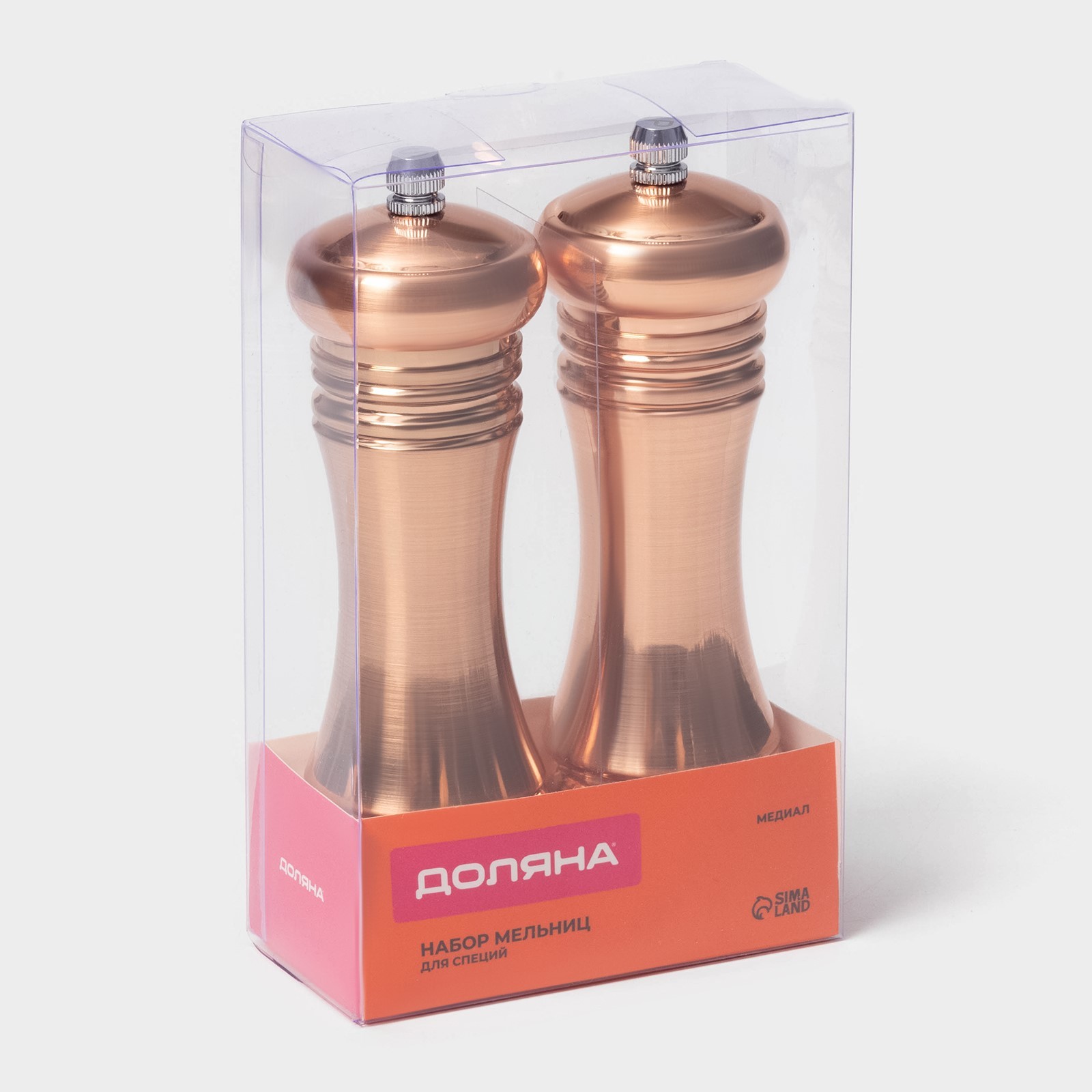 Набор мельниц для специй доляна «медиал», 2 шт, 16,2 см, цвет медный
