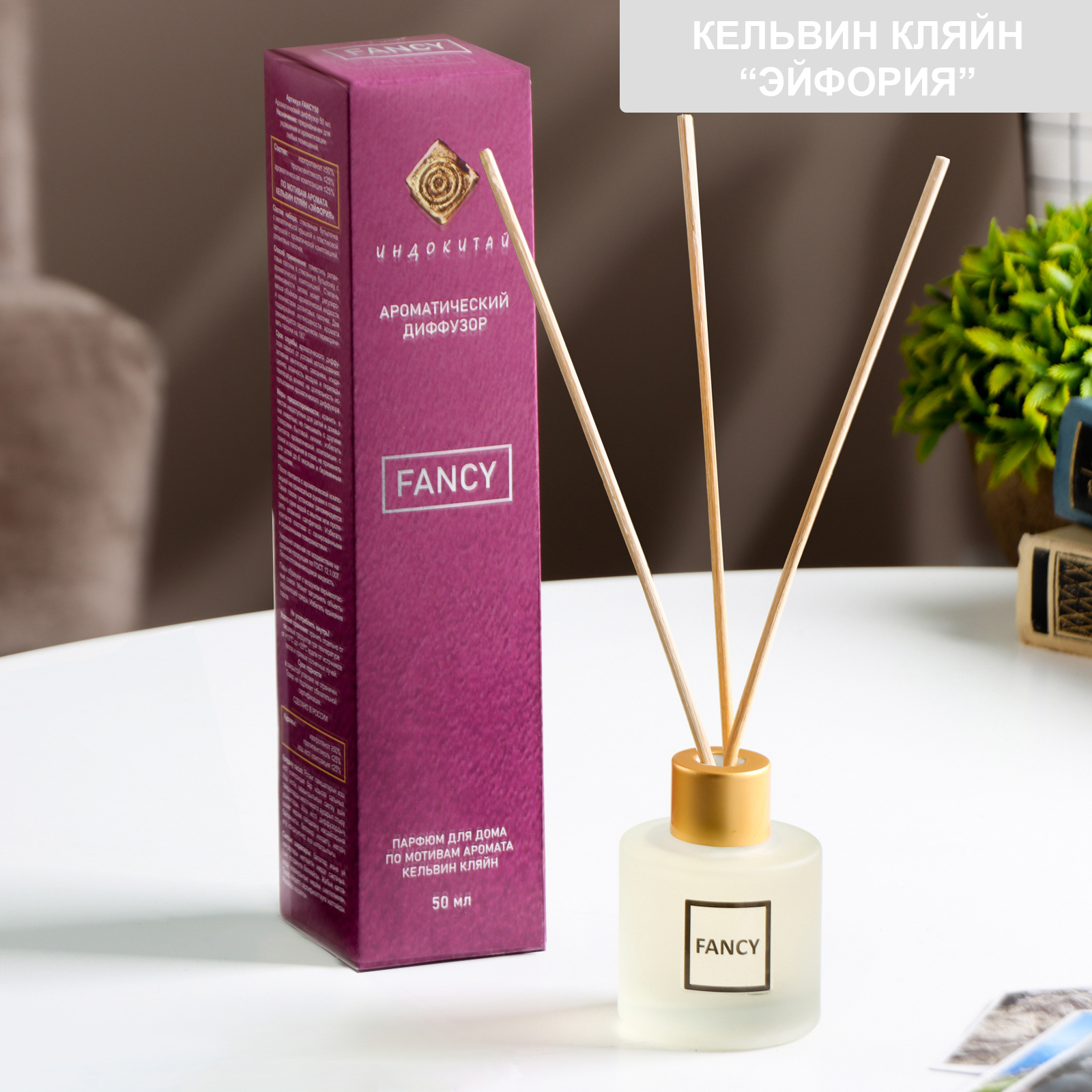 Диффузор ароматический "fancy" 50 мл по мотивам кельвин кляйн «эйфория». Диффузор по мотивам известных духов сочетает в себе восточную композицию: амбра, фиалка, орхидея, гранат, мускус. Объём, мл: 50 Вид ароматизатора: Диффузор Аромат: Амбра Аромат: Гранат Аромат: Фиалка Аромат: Мускус Аромат: Орхидея Температурное ограничение: Нет  развернуть описание ▼