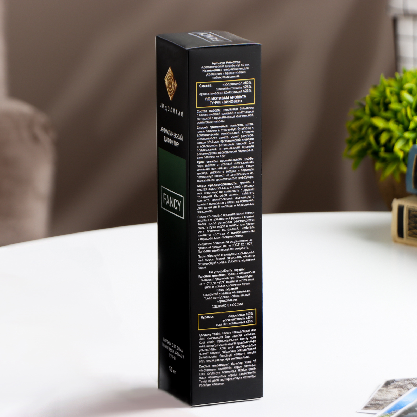 Диффузор ароматический "fancy" 50 мл по мотивам гуччи «виновен». Диффузор по мотивам известных духов сочетает в себе свеже-сладкий ненавязчивый цветочный аромат, мягкий, пряный, восточный с нотами сирени, персика, пачули, амброй. Объём, мл: 50 Вид ароматизатора: Диффузор Аромат: Пряности Аромат: Сирень Аромат: Персик Аромат: Амбра Аромат: Пачули Температурное ограничение: Нет  развернуть описание ▼