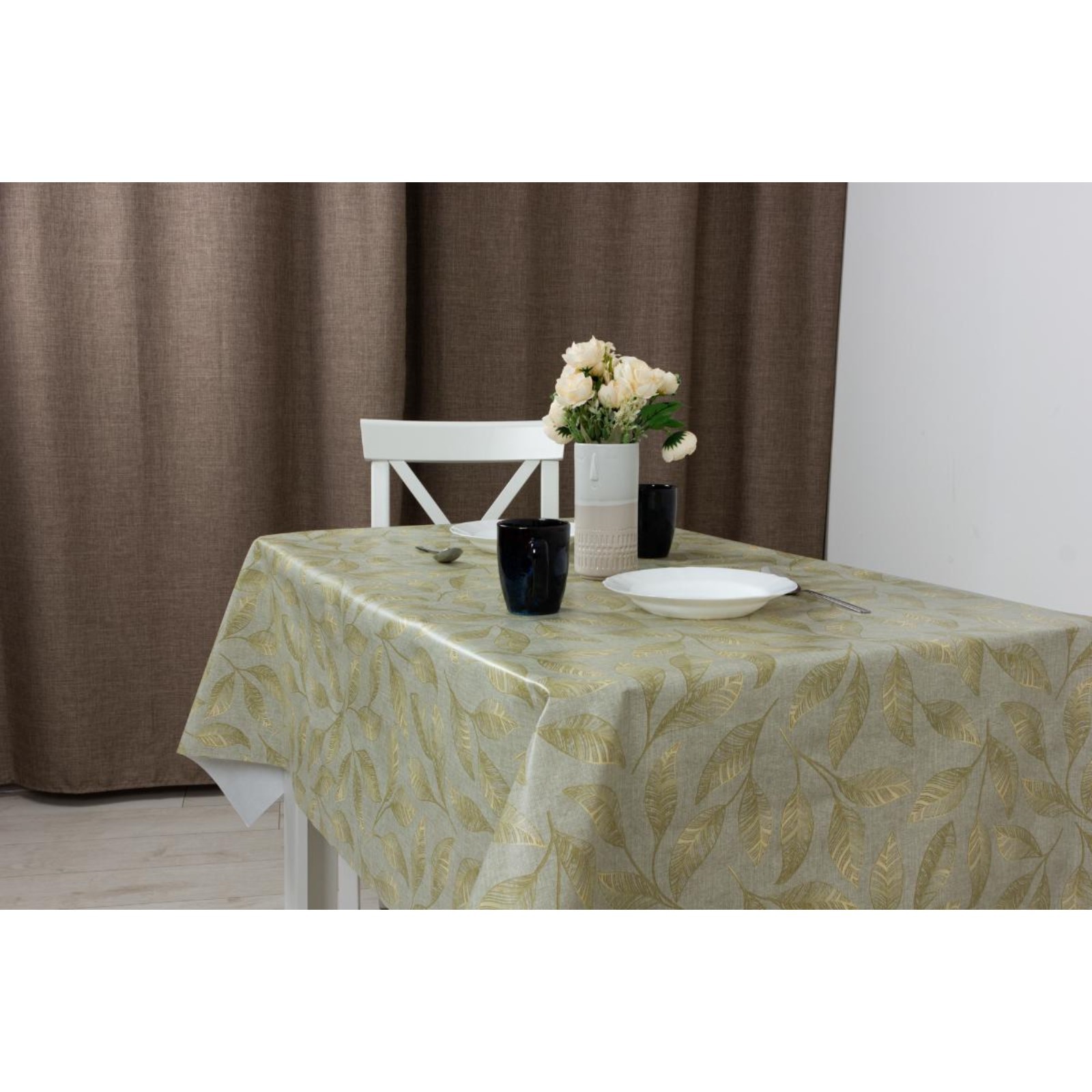 Клеёнка Camelia 140 см, рисунок листья золото, рулон 20 п.м.