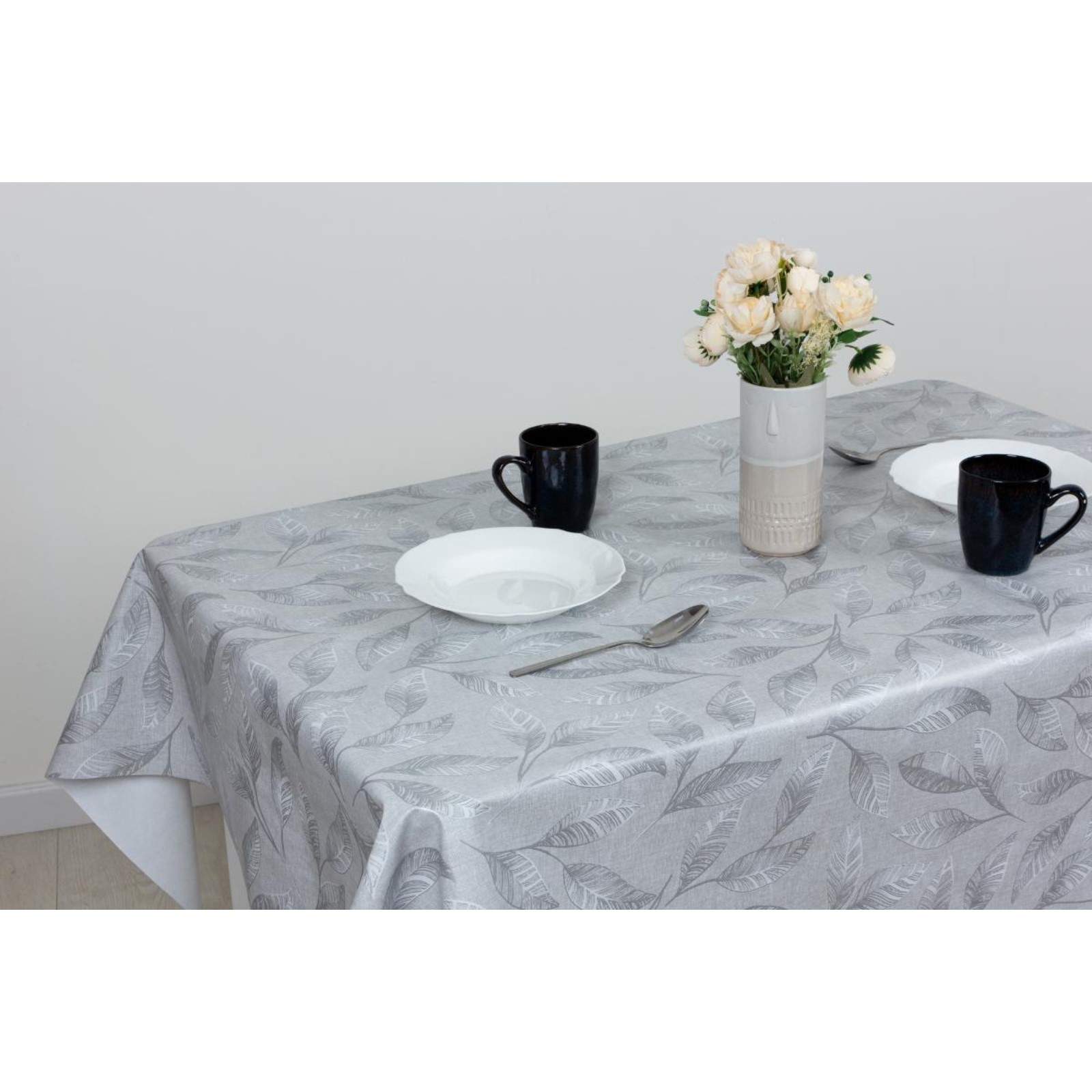 Клеёнка Camelia 140 см, рисунок листья серебро, рулон 20 п.м.