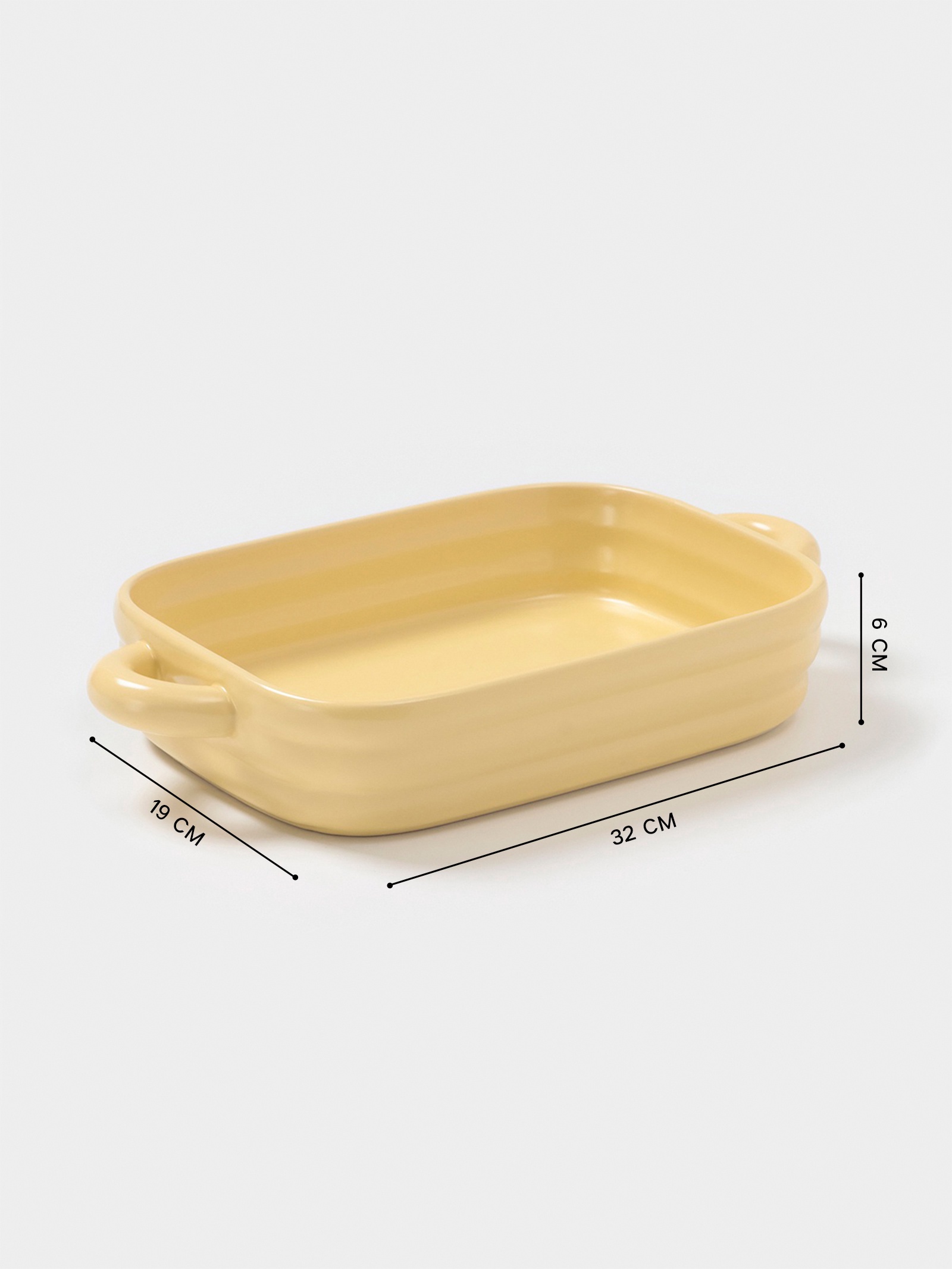 Форма для запекания доляна «зефир», 1.7 л, 32 19 6 см, прямоугольная, керамика, жёлтая. Позвольте вашему кулинарному творчеству заиграть новыми красками с удивительной формой для запекания «Зефир», способной подчеркнуть вкус и красоту любого блюда. Эта прямоугольная керамическая форма, выполненная в солнечном жёлтом цвете, не только добавит яркости вашей кухне, но и станет настоящей находкой для ваших кулинарных экспериментов. Размеры 32 19 6 см идеально подходят для приготовления различных вторых блюд, позволяя вам создавать классические запеканки, овощные рагу и многие другие лакомства. Преимущества: Эстетичный дизайн: яркий жёлтый цвет добавляет позитивные нотки в вашу кухню и прекрасно смотрится на столе.Удобство в уходе: можно мыть в посудомоечной машине.Функциональность: предназначена для приготовления вторых блюд, но также отлично подходит для запекания хлеба и десертов, расширяя ваши кулинарные горизонты.Качество материалов: керамика беспечивает равномерное прогревание и сохранение тепла, также долговечность и устойчивость к высоким температурам.Набор:Нет|Цвет:Жёлтый|Количество ячеек:1|Объём, л:1.7|Высота стенки, см:6|Объём, мл:1700|Рисунок:Нет|Крышка:Нет|Материал:Керамика|Тип формы:Для приготовления вторых блюд|Разъёмная форма:Нет|Наличие подставки:Нет|Можно мыть в посудомоечной машине:Да|Можно использовать в СВЧ-печи:Да|Текстура:С рельефом|Особенности:Без особенностей|Матовая поверхность:Нет|Для горячего:Да|Страна:Китай  развернуть описание ▼