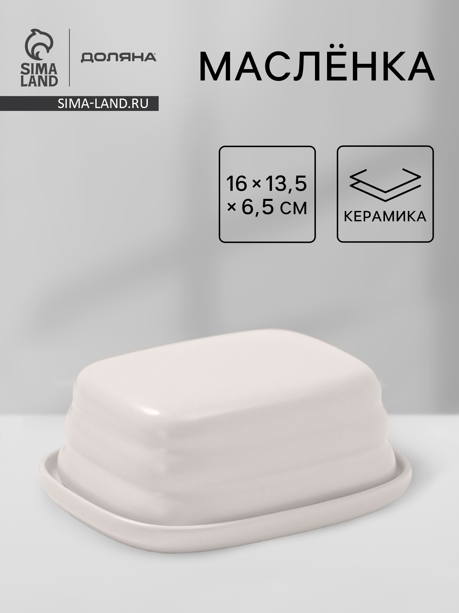 Маслёнка доляна «зефир», 16 13.5 5 см, керамика, белая