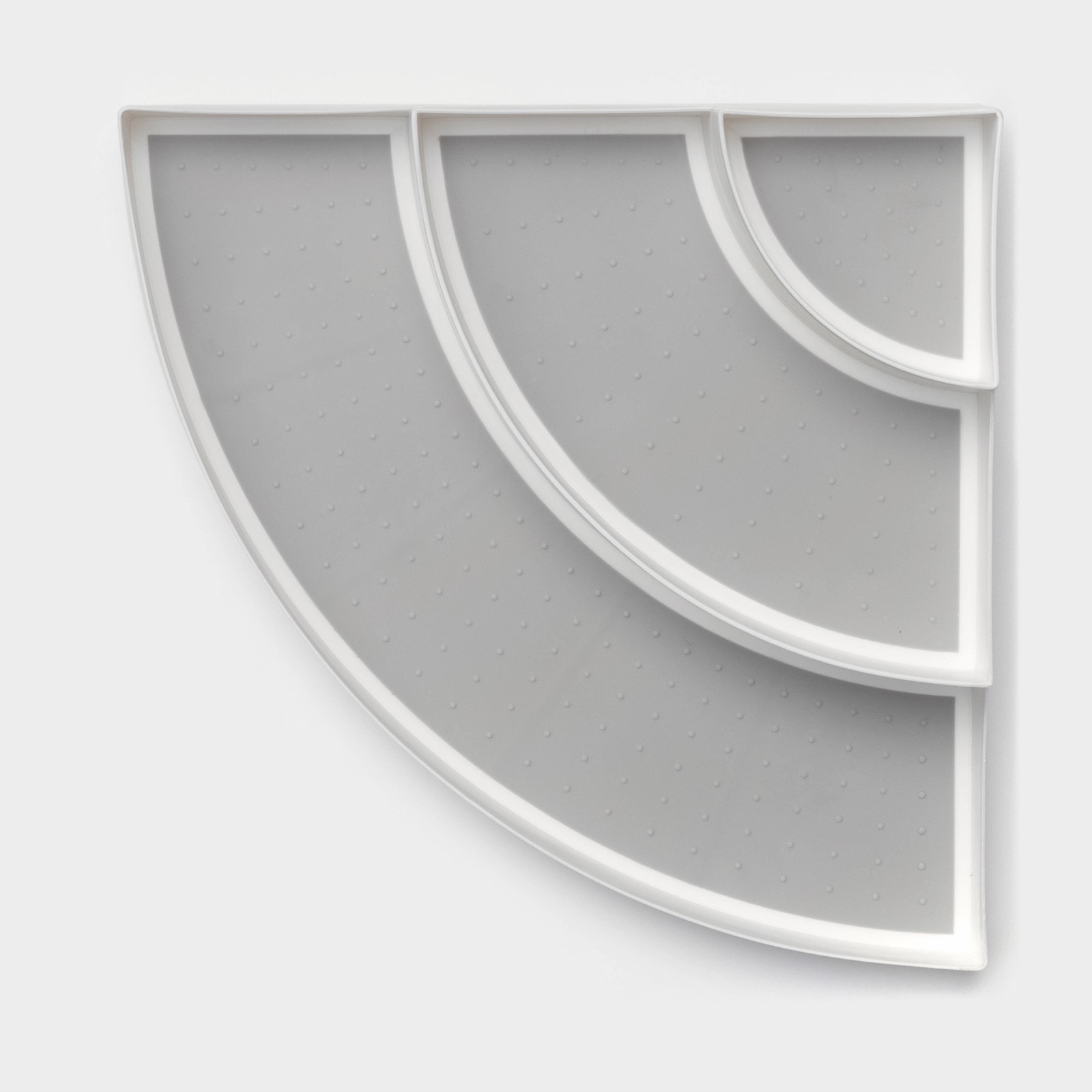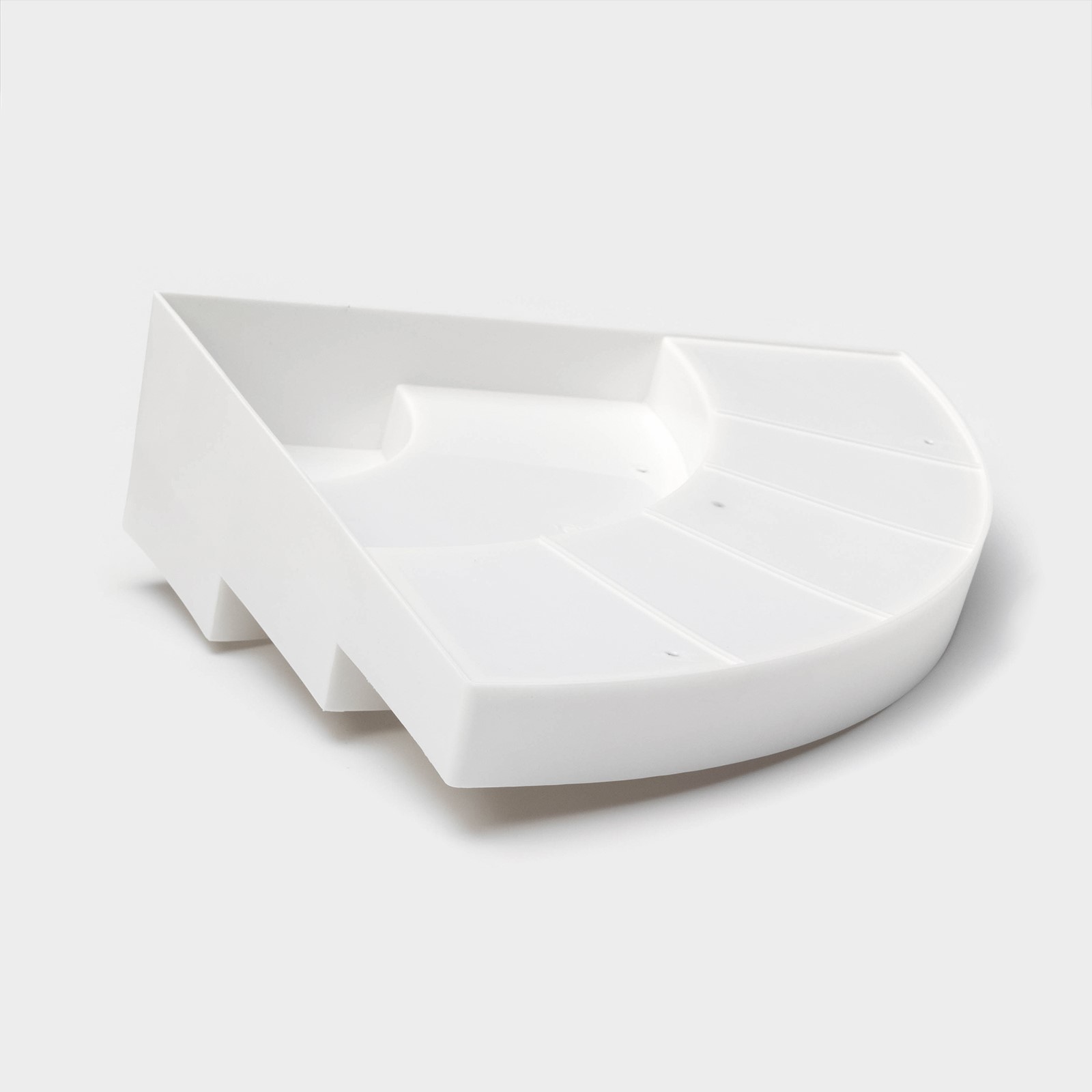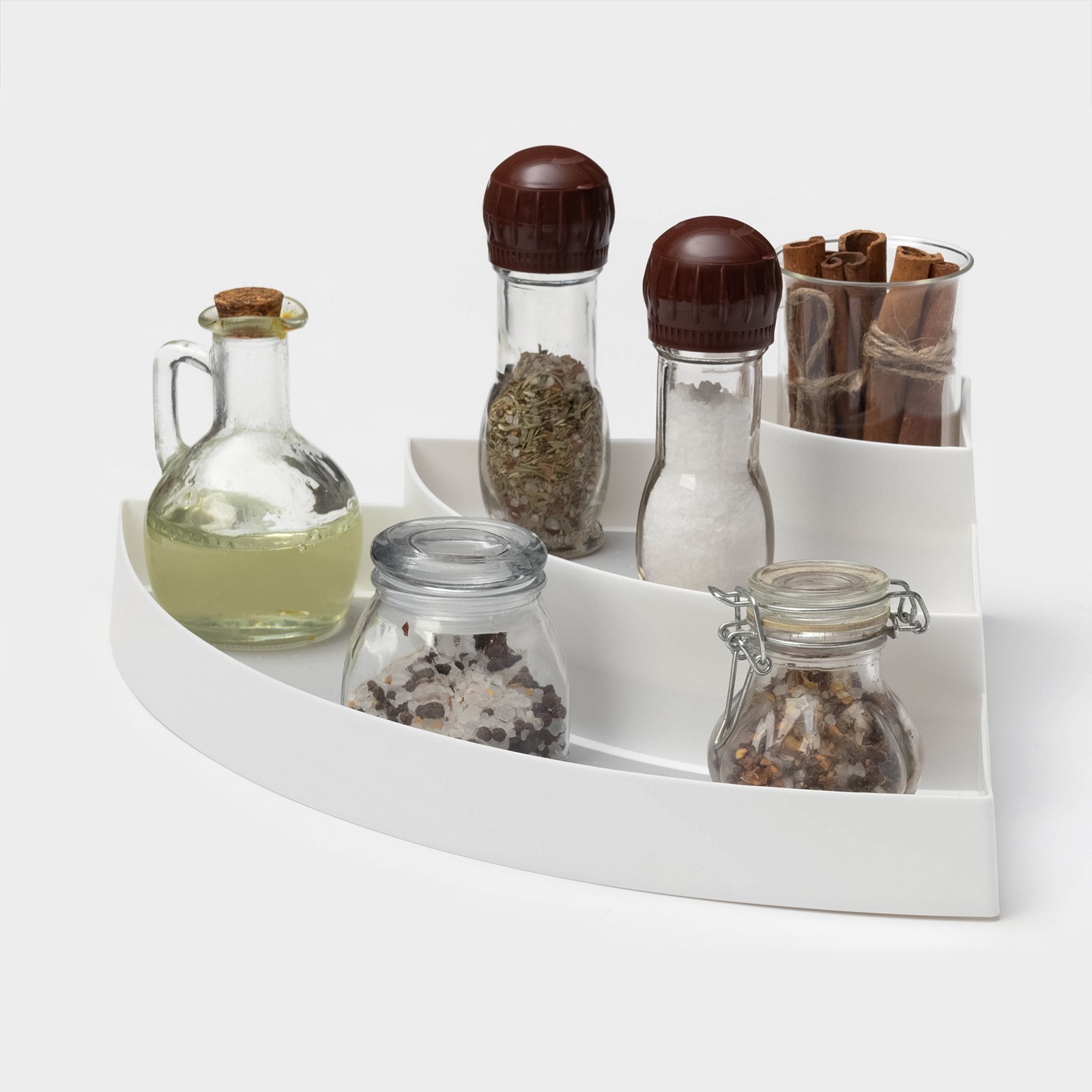 Подставка для специй 3 яруса griten, угловая, 30x30x8,7 см, цвет белый. Подставка для организации пространства и легкого доступа к дальним уголкам. Лоток можно установить на стол, в шкаф. Отлично впишется на полке, стеллаже внутри мебели. Универсальная трехступенчатая этажерка станет незаменима для размещения солонок, специй, баночек с приправами, соусов, масел. На полке можно хранить косметику, лаки, туалетную воду. Многофункциональный инвентарь может быть использован для хранения канцелярии, мелочей, витаминов, лекарств. Подставка изготовлена из прочного пластика с накладками с антискользящим покрытием, конструкция имеет вид лестницы в 3 яруса. Цвет: Белый Форма: Фигурная Длина, см: 30 Ширина, см: 30 Высота, см: 8.7 Количество секций: 3 Материал: Пластик Можно использовать в СВЧ-печи: Нет Форма: Фигурная  развернуть описание ▼