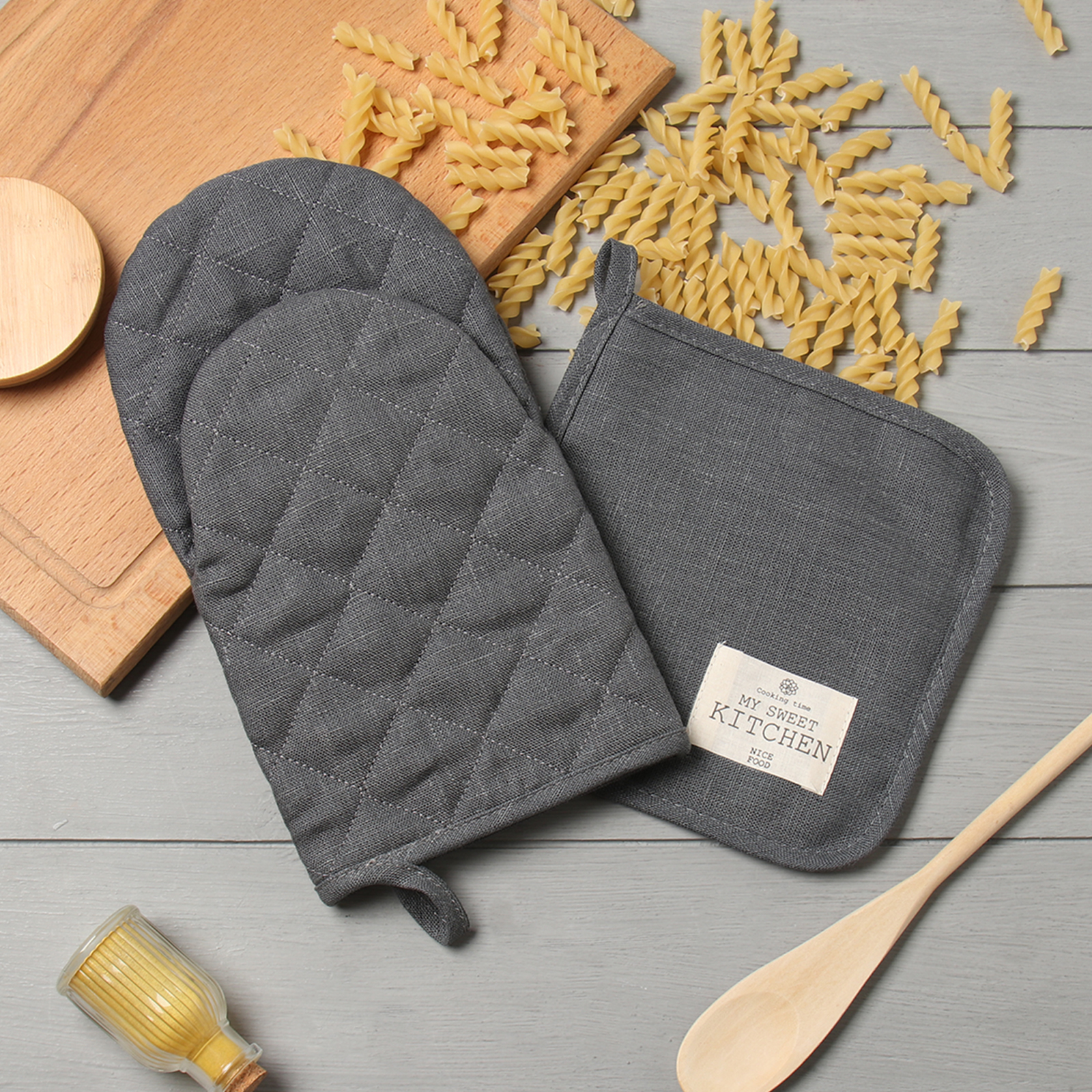 Набор кухонный  этель Eco Grey: варежка 15х28см, прихватка 19х19см, 100% лён, 245 г/м2