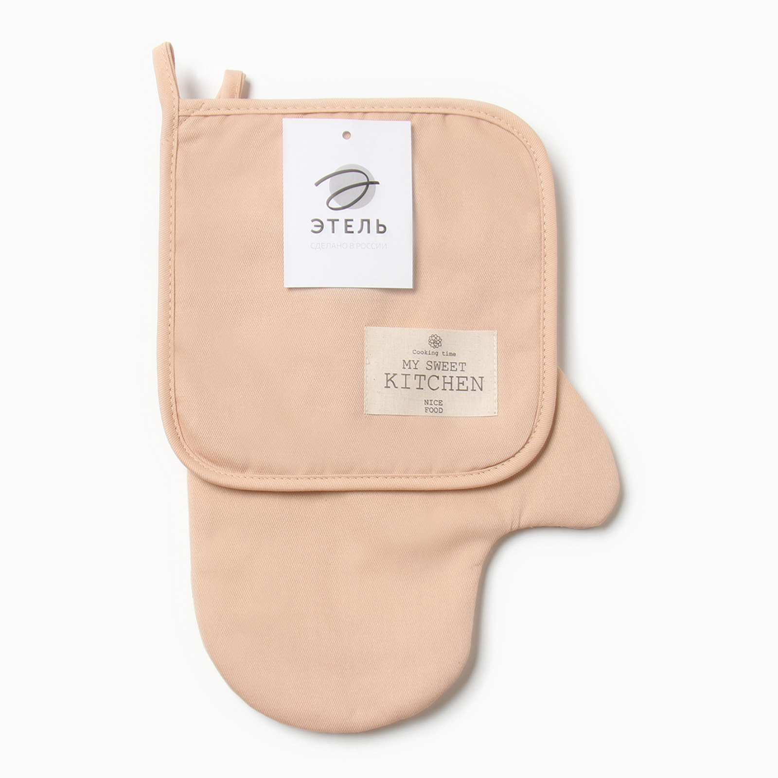Набор кух. этель "Kitchen" цв.бежевый, варежка-прихватка 20х28см, прихватка 19х19см,100% хл
