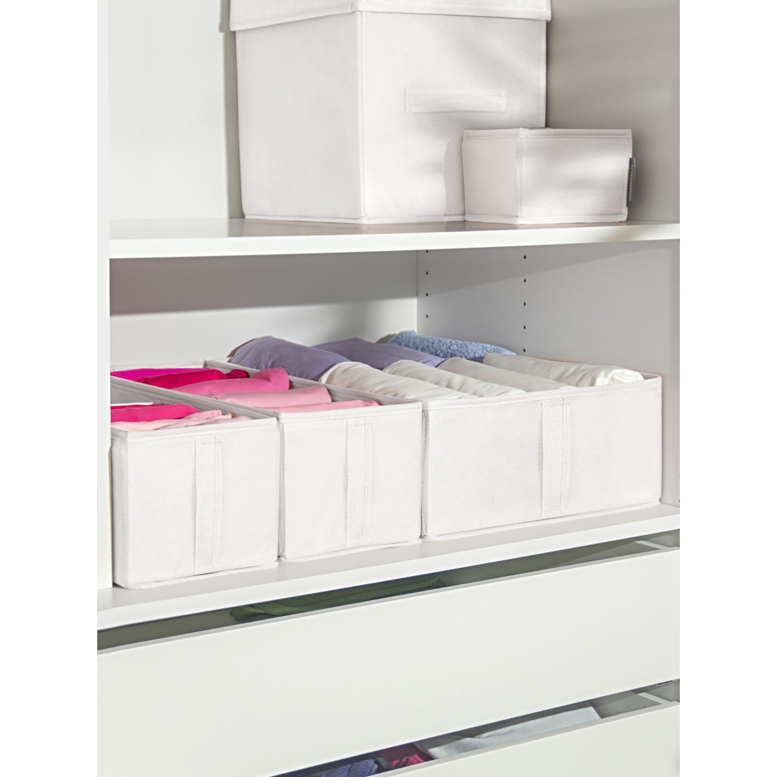 Органайзер 50х36х16 см, 2 ячейки. - Материал - спанбонд, пластик - Состоит из двух больших ячеек - Вставное пластиковое жёсткое дно - Вертикальная ручка на короткой стороне - Органайзеры поставляются в сложенном виде. Почему мы рекомендуем этот товар: - Органайзер пригодится для хранения одежды, белья, полотенец, платков - Прекрасно подходит для вертикального хранения вещей - Благодаря жёсткому дну, при перемещении или поднятии органайзера вещи не будут перемешиваться - Вертикальная ручка на короткой стороне помогает удобно вытащить органайзер с полки - Размеры органайзеров разработаны так, чтобы в каждом комоде и на каждой полке все пространство использовалось по максимуму. Вы можете составить уникальную композицию органайзеров именно для вашего пространства - Изготовлен из воздухопроницаемого материала - вещи сохранят свежесть при хранении - Благодаря прочному каркасу из пластика, органайзер хорошо держит форму и его можно стирать (ручная стирка в мыльном растворе) - Органайзер подойдет в качестве оригинального и полезного подарка Цвет: Белый Ширина, см: 36 Высота, см: 16 Глубина, мм: 50 Количество отделений: 2 Материал: Спанбонд  развернуть описание ▼