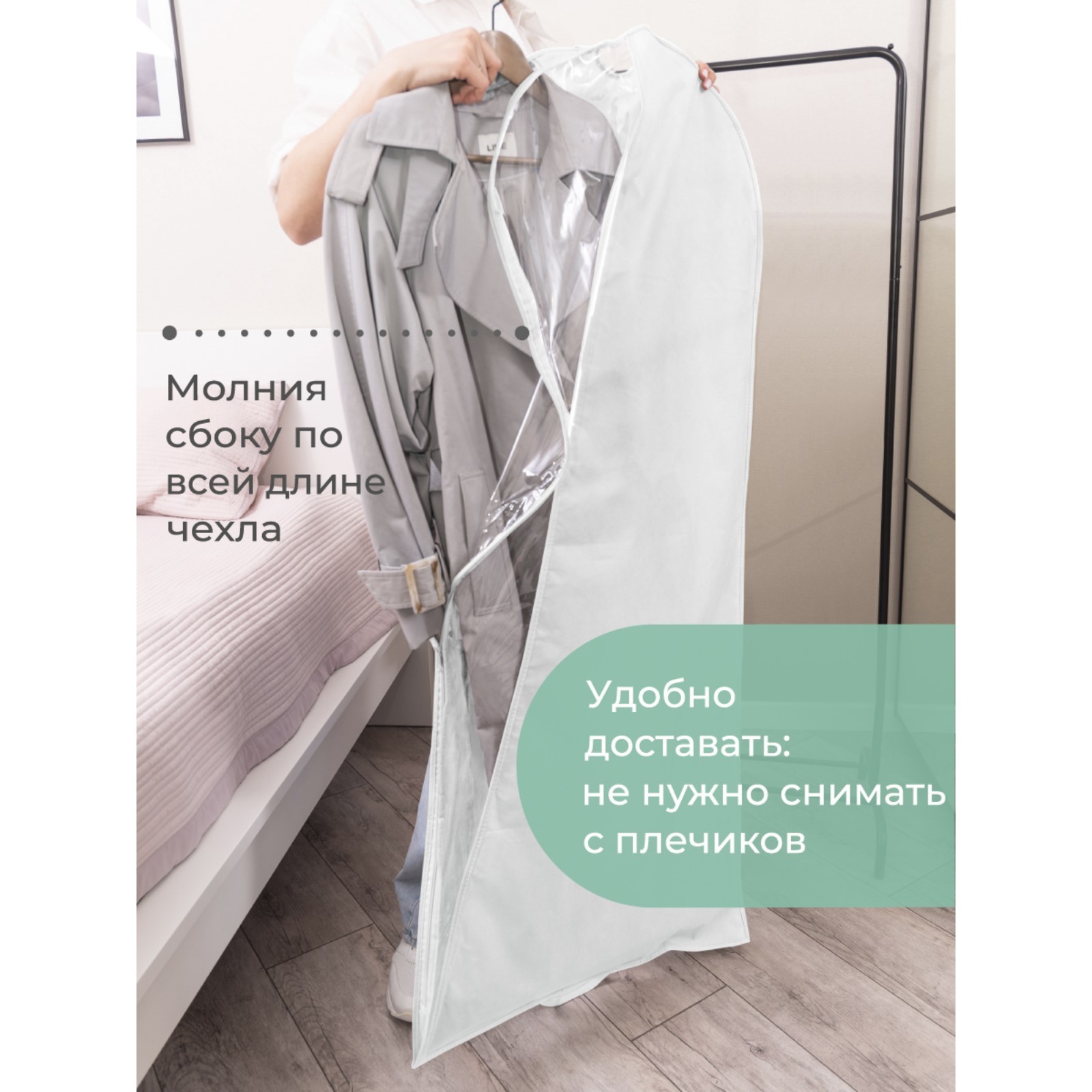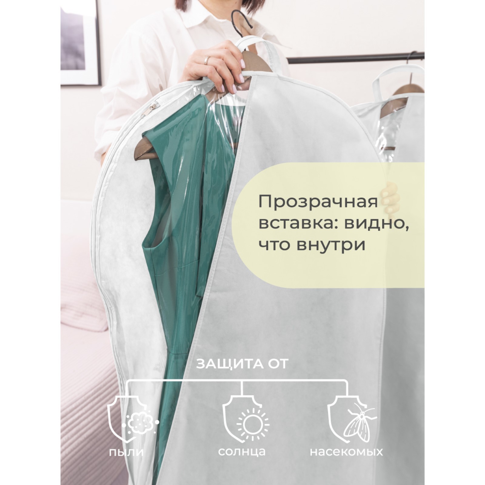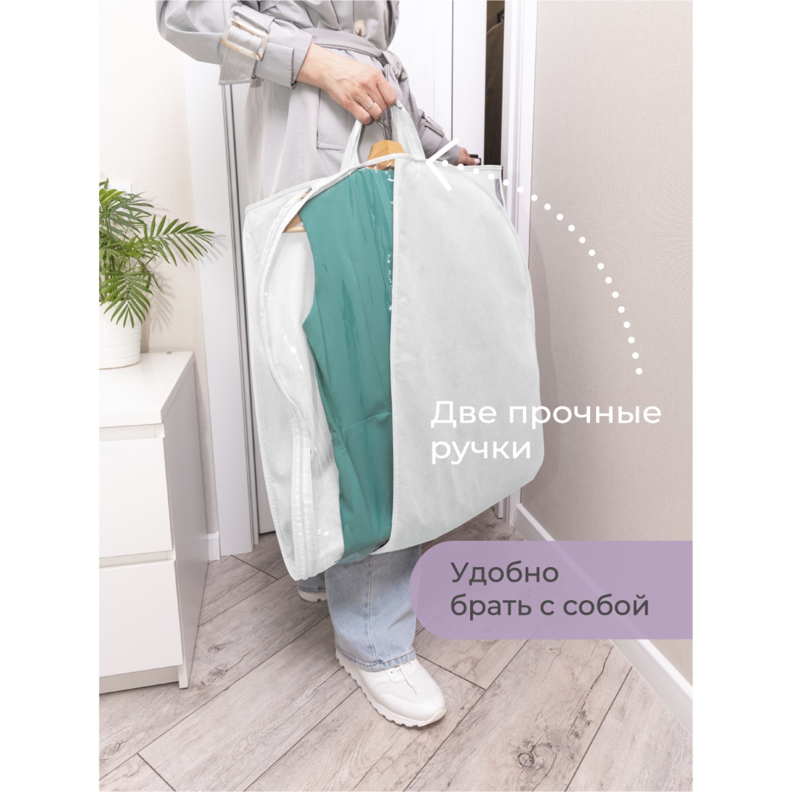 Чехол для одежды, 110х60 см, с ручками, короткий