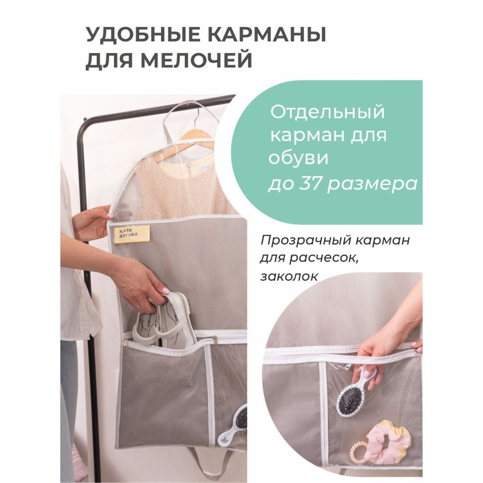 Чехол для одежды, детский, 80х50 см, с карманами, серый