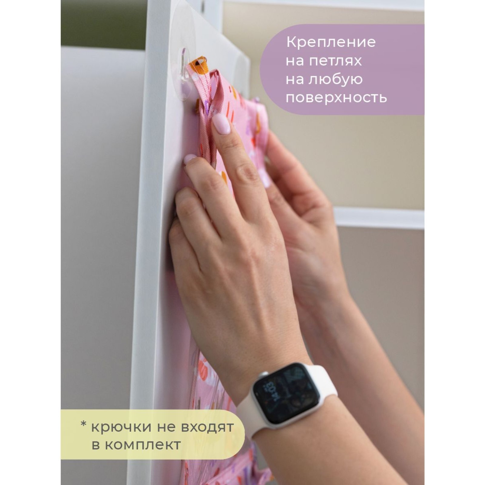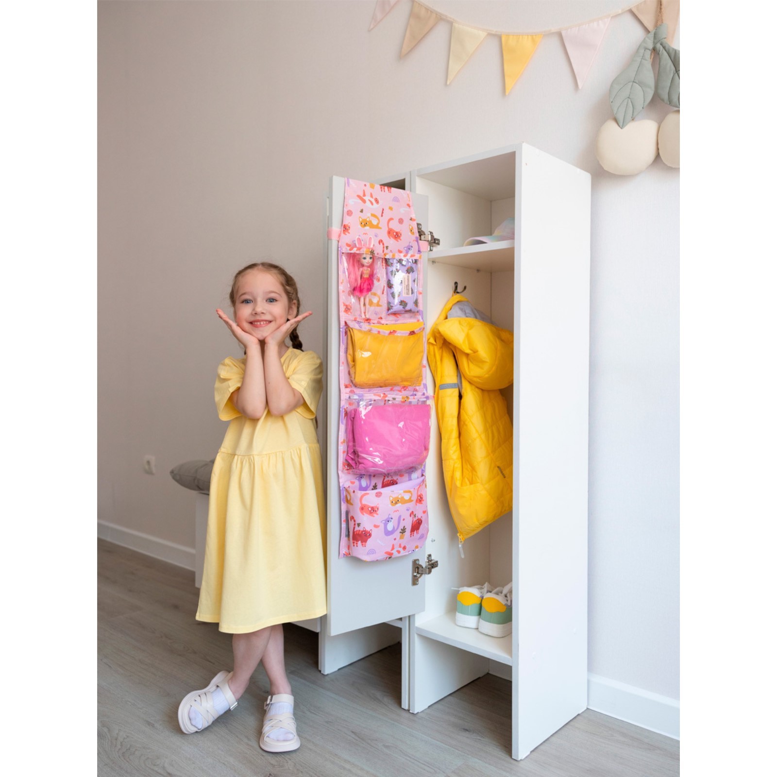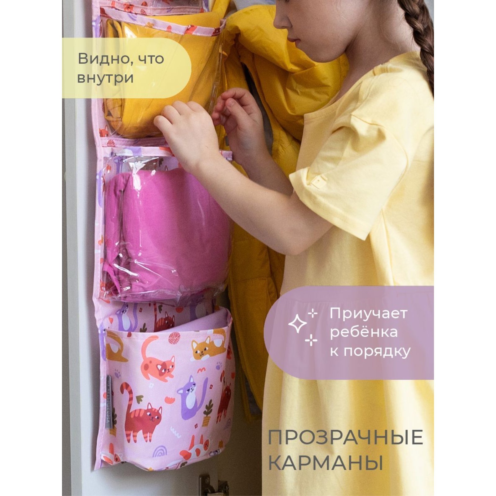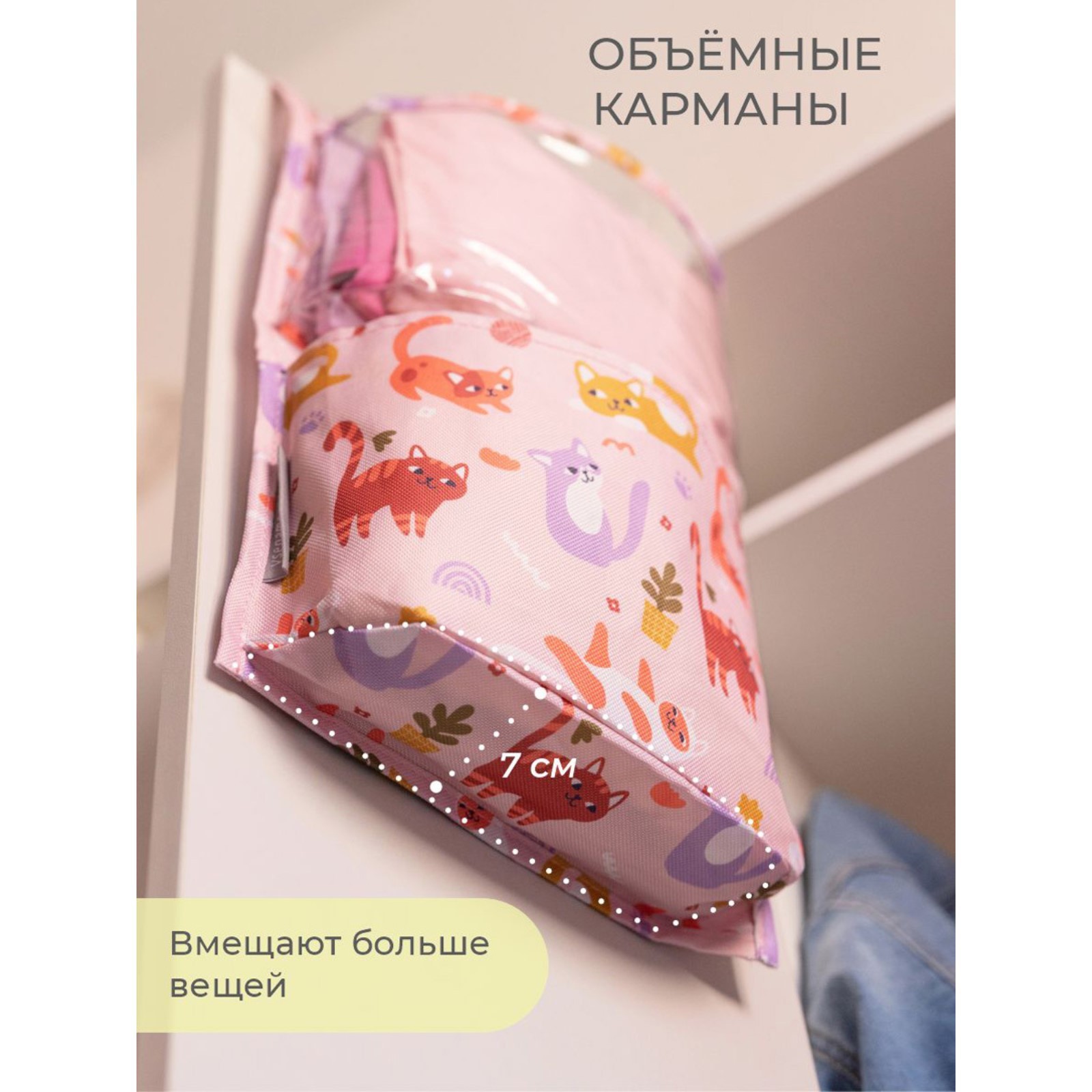 Кармашки в садик «котики», 83х24 см, для детского шкафчика, розовый