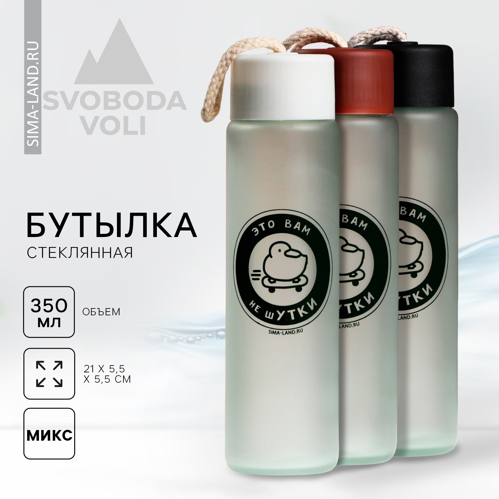 Бутылка для воды «утки», стекло,цвет микс, 350 мл
