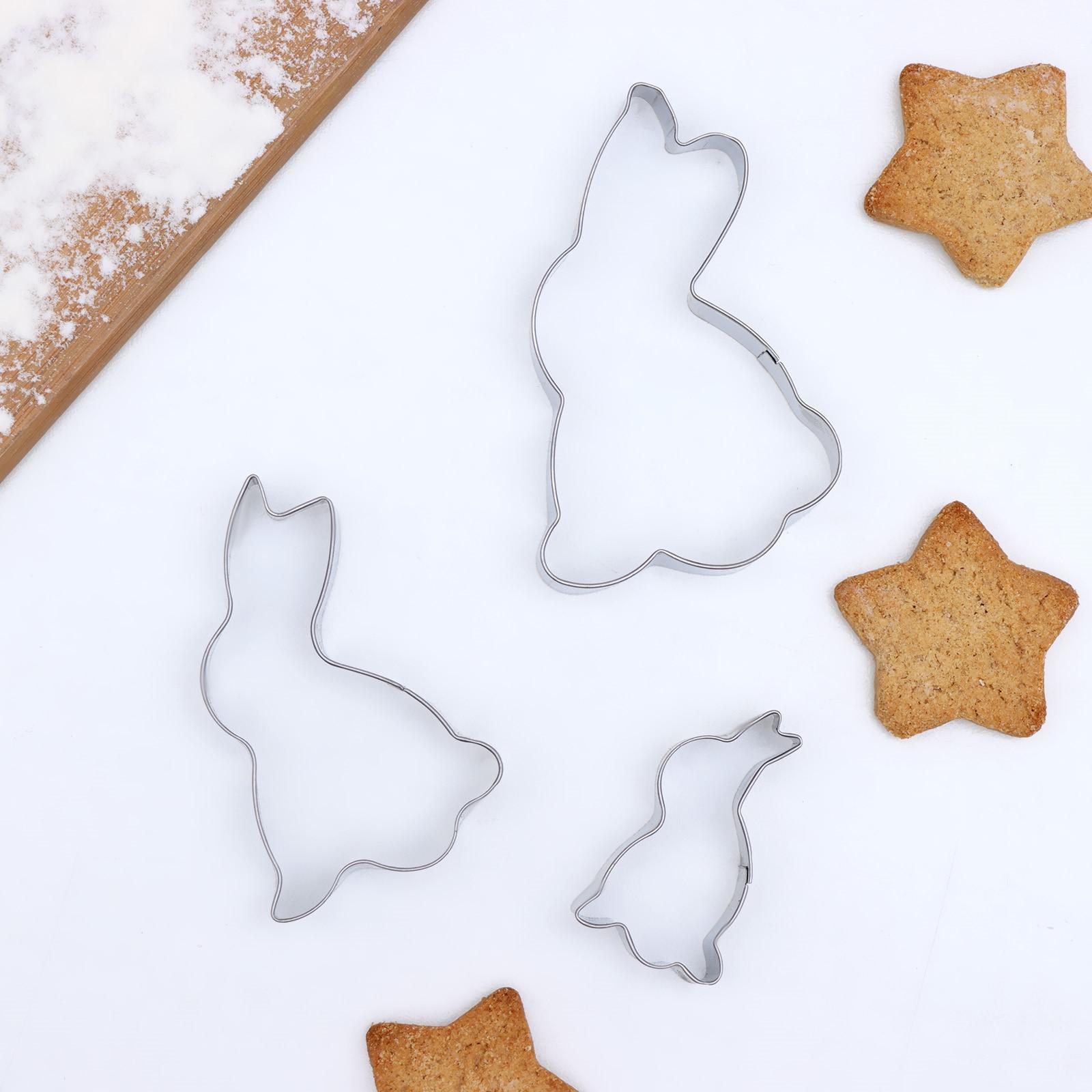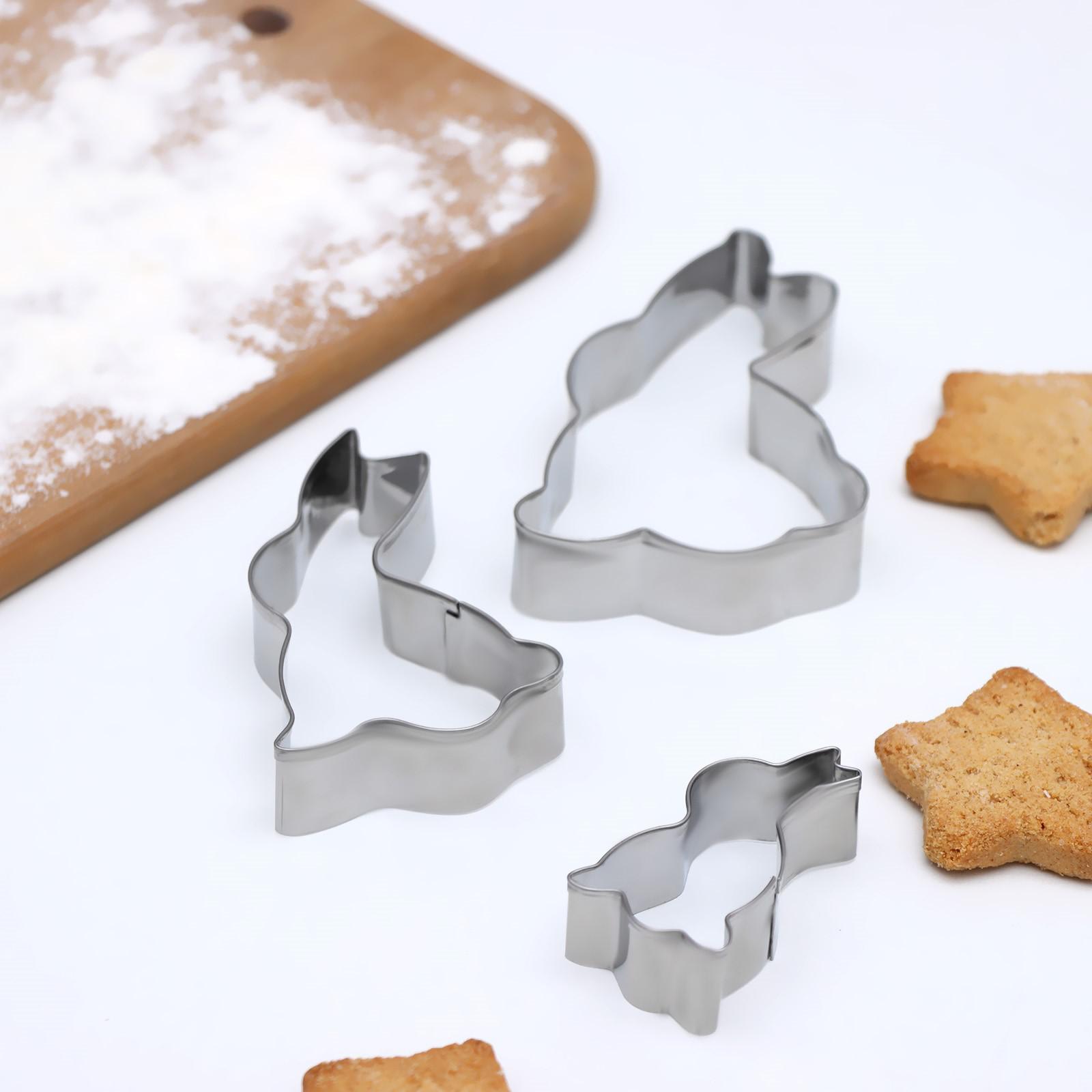 Набор форм для вырезания печенья доляна «кролик», 3 шт, 5,5x8,5 см, 7,3x4,6 см, 4,8x2,6 см, цвет хромированный