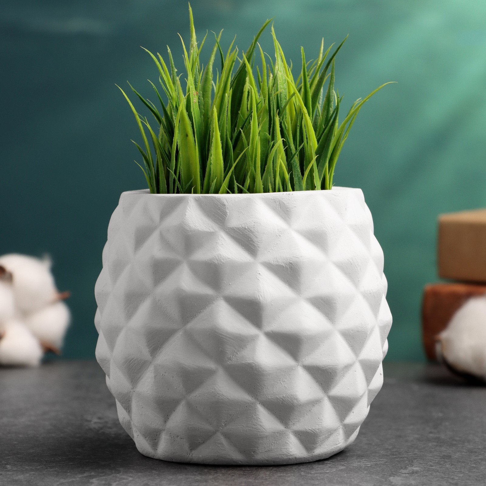 Фигурное кашпо для цветов «ананас», 12 8 см, гипс, белое. Цвет:Белый|Диаметр, см:7.5|Высота, см:8.5|Внутренний диаметр, см:6|Вид установки:Настольное|Материал:Гипс|Покрытие:Без покрытия|Можно оставлять зимой на улице:Нет|Особенности:Фигурное|Тип полива:Без системы полива|Страна:Россия  развернуть описание ▼