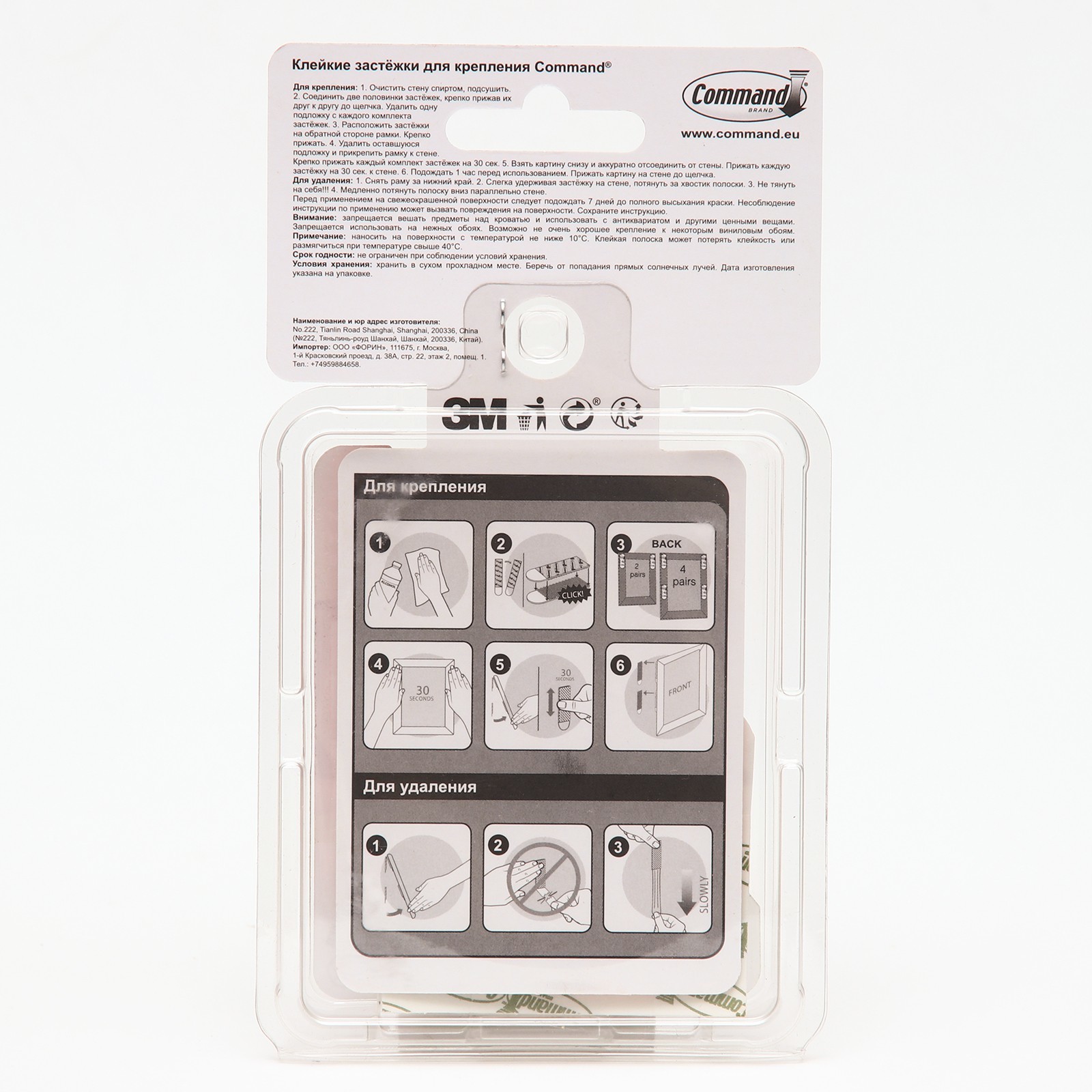 Застежки самоклеящиеся Command для картин, малые, белые, 3 пары