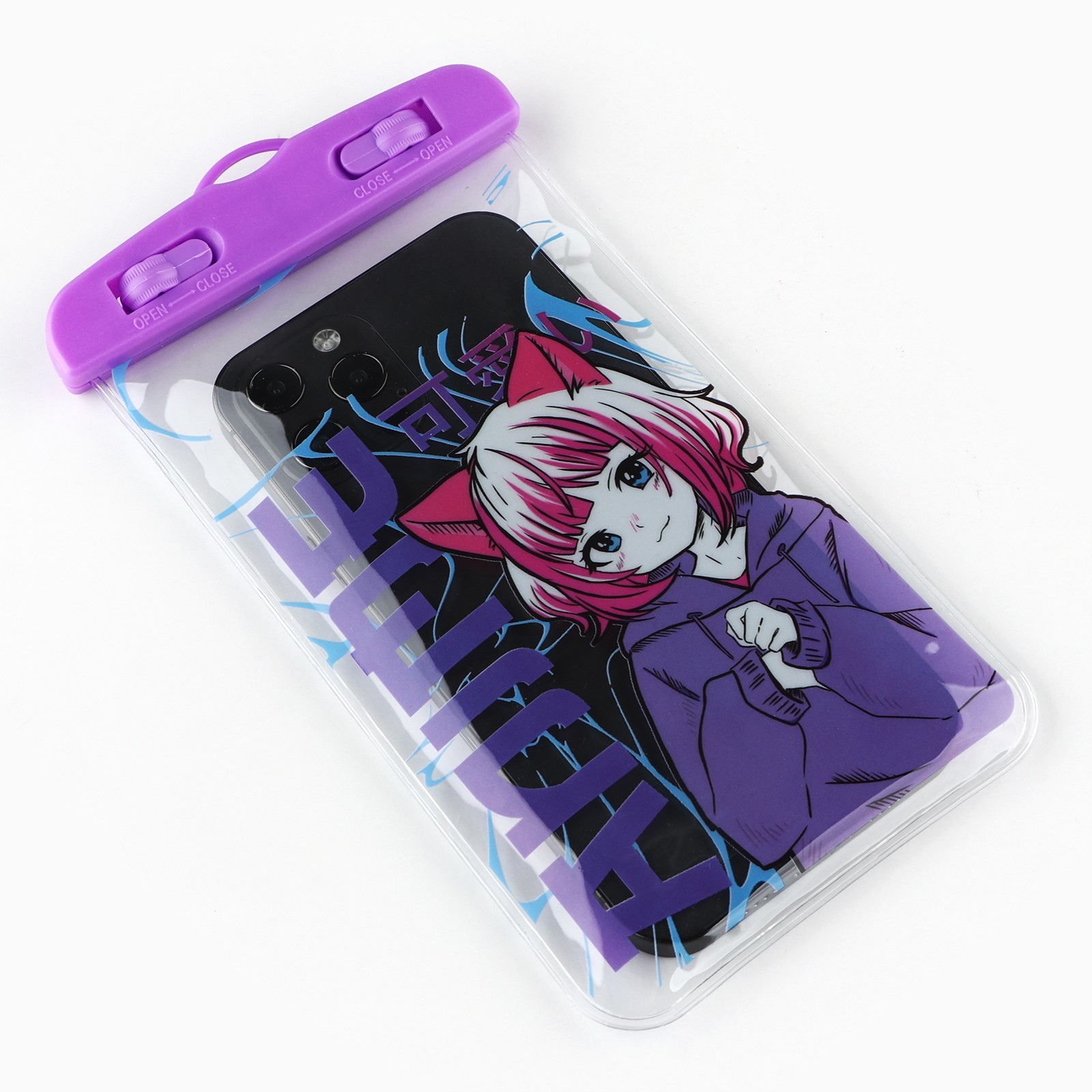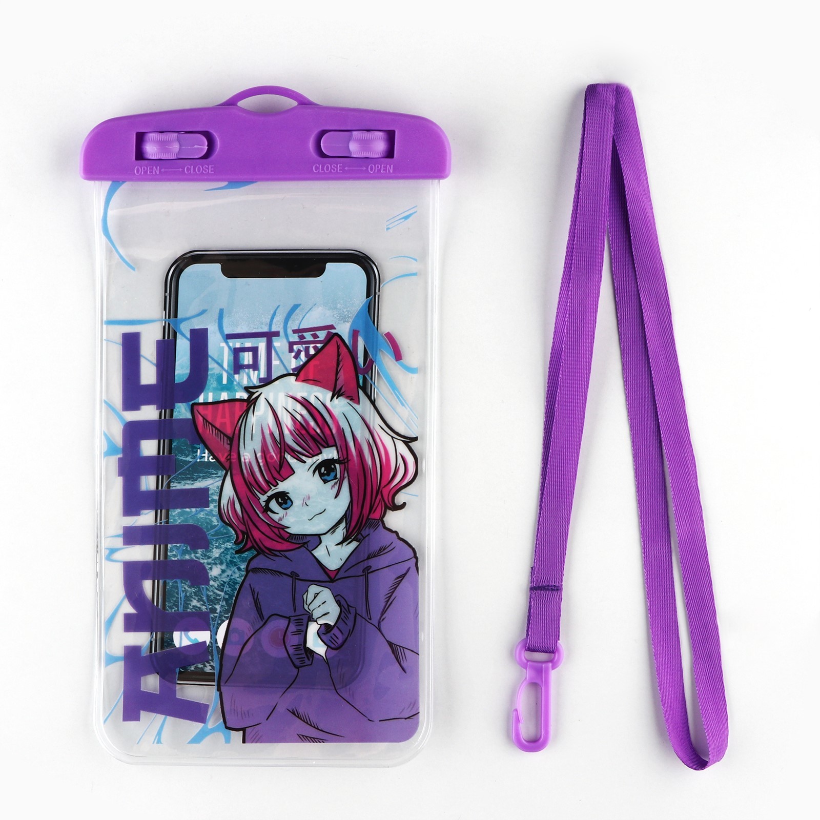 Чехол на телефон водонепроницаемый «аниме», 12 х 21 см.. Чехол на телефон водонепроницаемый «Аниме», 12 х 21 см. Водонепроницаемый чехол спасет ваш гаджет, если внезапно начнётся дождь, вы надумаете отдохнуть у воды или захотите сплавиться по реке. Чехол имеет крепление в виде ленты и крепкие застёжки в верхней части. Также в чехле можно хранить документы или бумажные деньги. Цвет: Прозрачный Цвет: Фиолетовый Материал: Текстиль Материал: Пластик Вид чехла: Водонепроницаемый Модель: Универсальный Марка: Универсальная  развернуть описание ▼