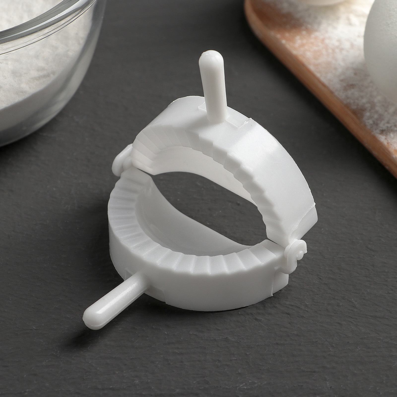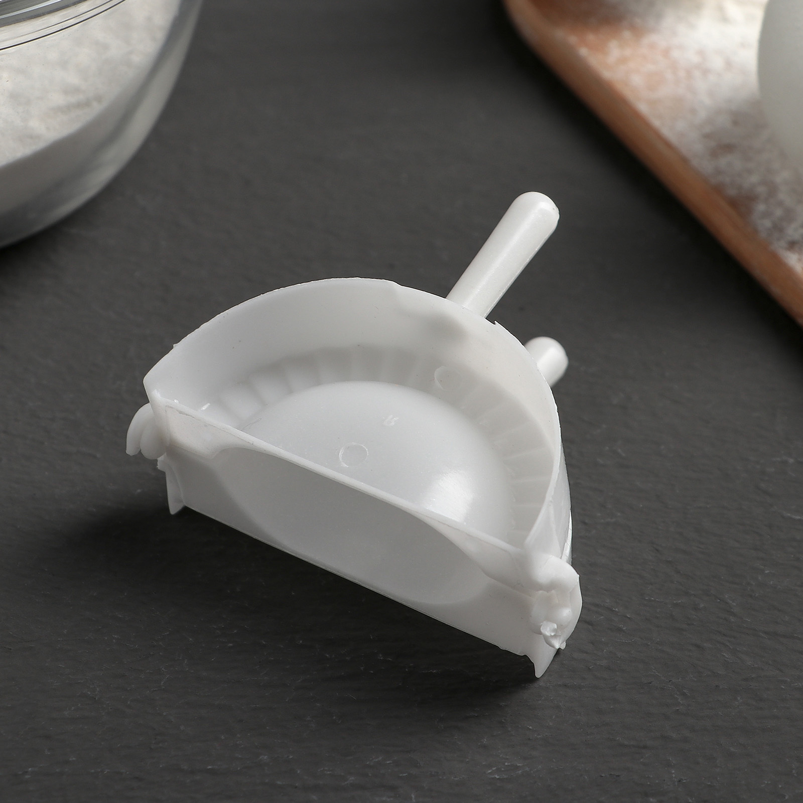 Форма для лепки пельменей, d=7 см, цвет белый. По мнению большинства, домашние пельмени – это а) необыкновенно вкусно; б) весьма трудоемко. Если первое утверждение неоспоримо, то со вторым мы категорически не согласны. Форма для лепки пельменей, d=7 см, цвет белый превратит процесс приготовления традиционного блюда в увлекательное занятие. Эргономичный инструмент аккуратно складывается и резными краями эффективно защипывает тесто. Ваша задача положить на круглую насадку заготовку и необходимое количество мясного фарша. Пельмени получаются идеально ровными и удивительно красивыми. Предлагаемое устройство можно загружать в посудомоечную машину. Цвет: Белый Материал: Пластик  развернуть описание ▼