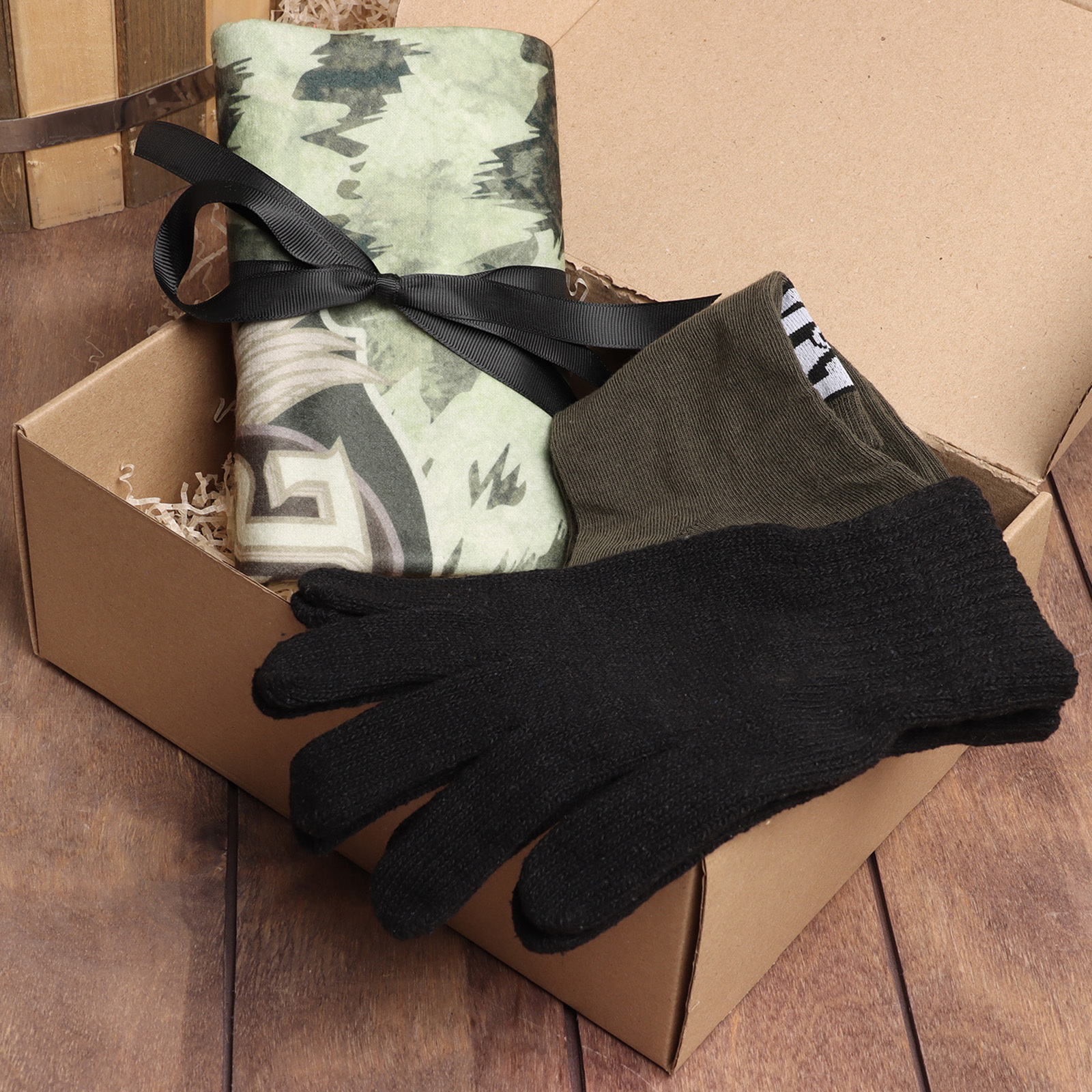 Набор подарочный «этель. 23 февраля», плед флисовый, носки, перчатки. Набор:Да|Цвет:Зелёный|Цвет:Чёрный|Для кого:Для мужчины|Ткань:Флис|Плотность, г/м :160|Размер, см:75 х 100|В наборе, шт.:3|Длина стопы, см:27|Длина стопы, см:29|Тематика:Военная|Вид упаковки:Подарочная коробка|Тематика праздника:Военные праздники|Тематика праздника:23 Февраля|Декоративные элементы:Без элементов|Рекомендации по уходу:Деликатная стирка при 30 °С|Рекомендации по уходу:Не отбеливать|Рекомендации по уходу:Барабанная сушка при низкой температуре|Составляющие набора:Носки|Составляющие набора:Перчатки|Составляющие набора:Плед|Возраст:Для взрослых|Страна:Россия  развернуть описание ▼