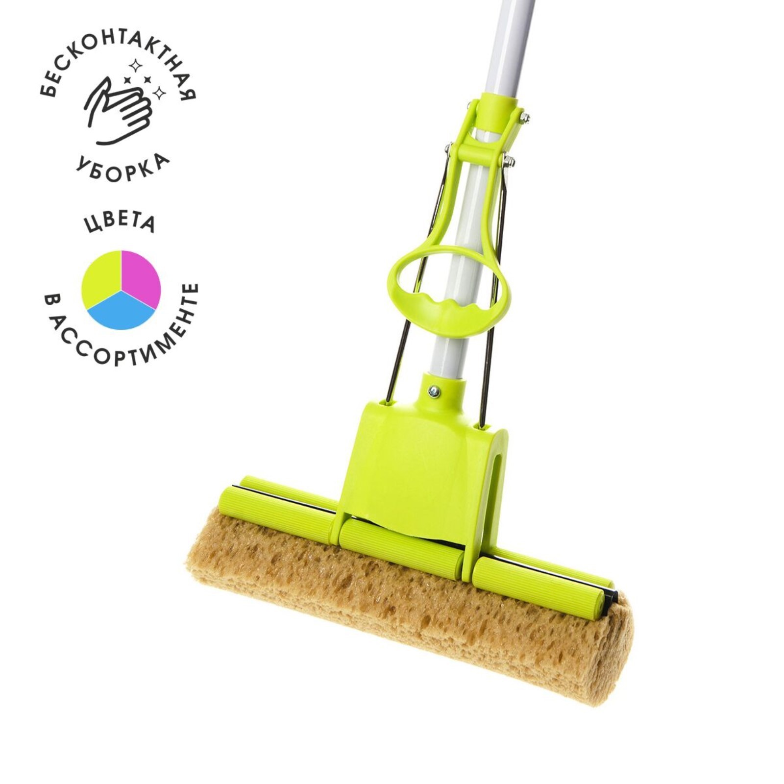 Швабра отжимная «чудо-спонж», насадка 27х9.5, самоотжимная цельная ручка 115 см. Удобная швабра для быстрой уборки поверхностей из керамической плитки, линолеума, ПВА. Губку из поролона перед применением не надо размачивать, поэтому такая швабра сразу готова к использованию. Просто намочите насадку, потяните за ручку отжимного механизма – и можно приступать к уборке. Швабра хорошо собирает мусор, волосы, шерсть домашних животных. Губка-насадка съёмная. Цвет: Зелёный Цвет: Серый Материал: Пластик Материал: Металл Вид: С губкой Педальный отжим: Нет Наличие колёс: Нет С дозатором: Нет Слив: Нет  развернуть описание ▼
