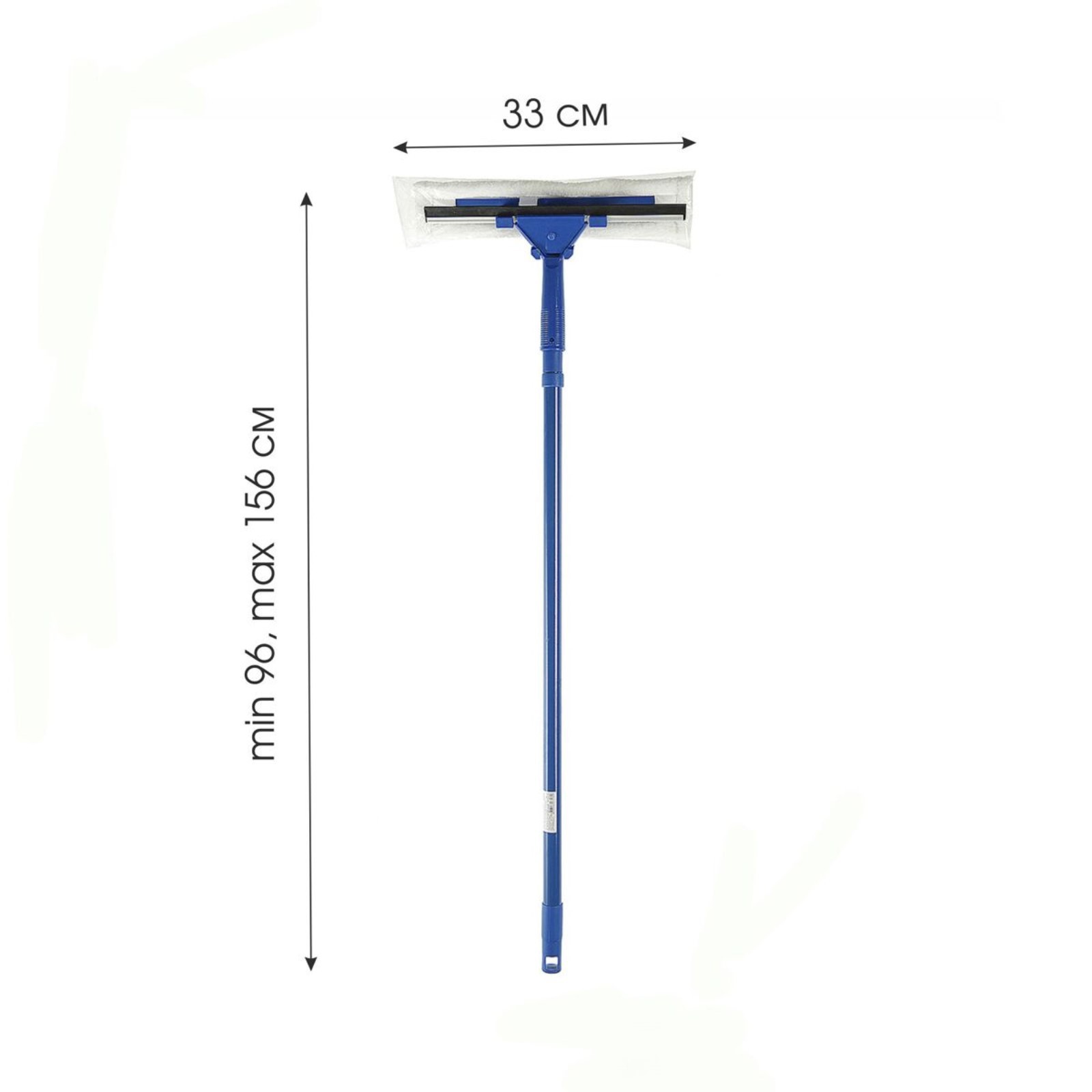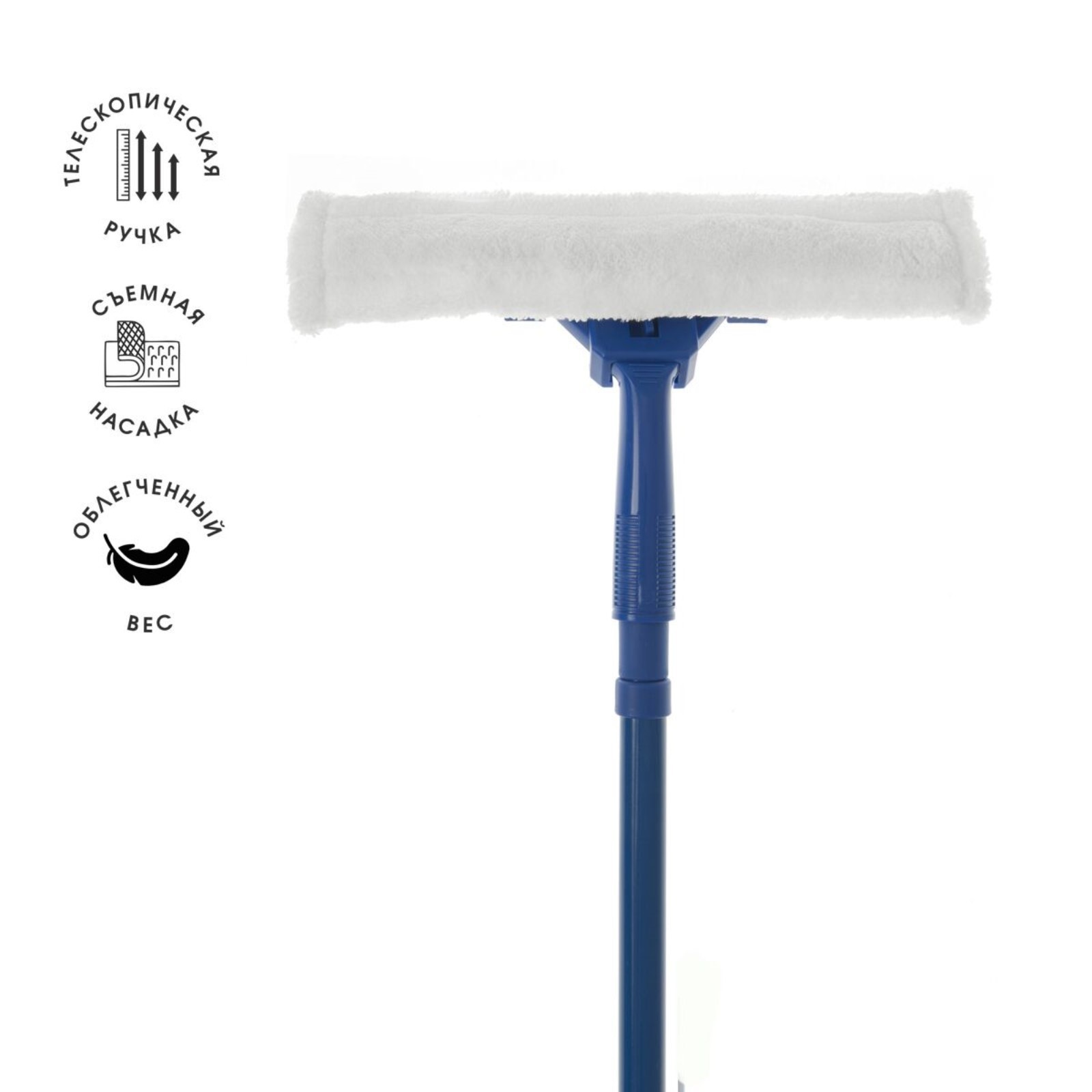Стеклоочиститель c шубкой, насадка 32 х 7.5 см, рукоятка 78-140 см. Удобный в применении. Легко справляется с любыми загрязнениями благодаря шубке из микрофибры. Оснащен сгоном для воды. Шубка легко снимается. Благодаря телескопической ручке, справляется с труднодоступными загрязнениями. Цвет: Синий Ширина, см: 32 Длина ручки, см: 78 Длина ручки, см: 140 Пульверизатор: Нет  развернуть описание ▼